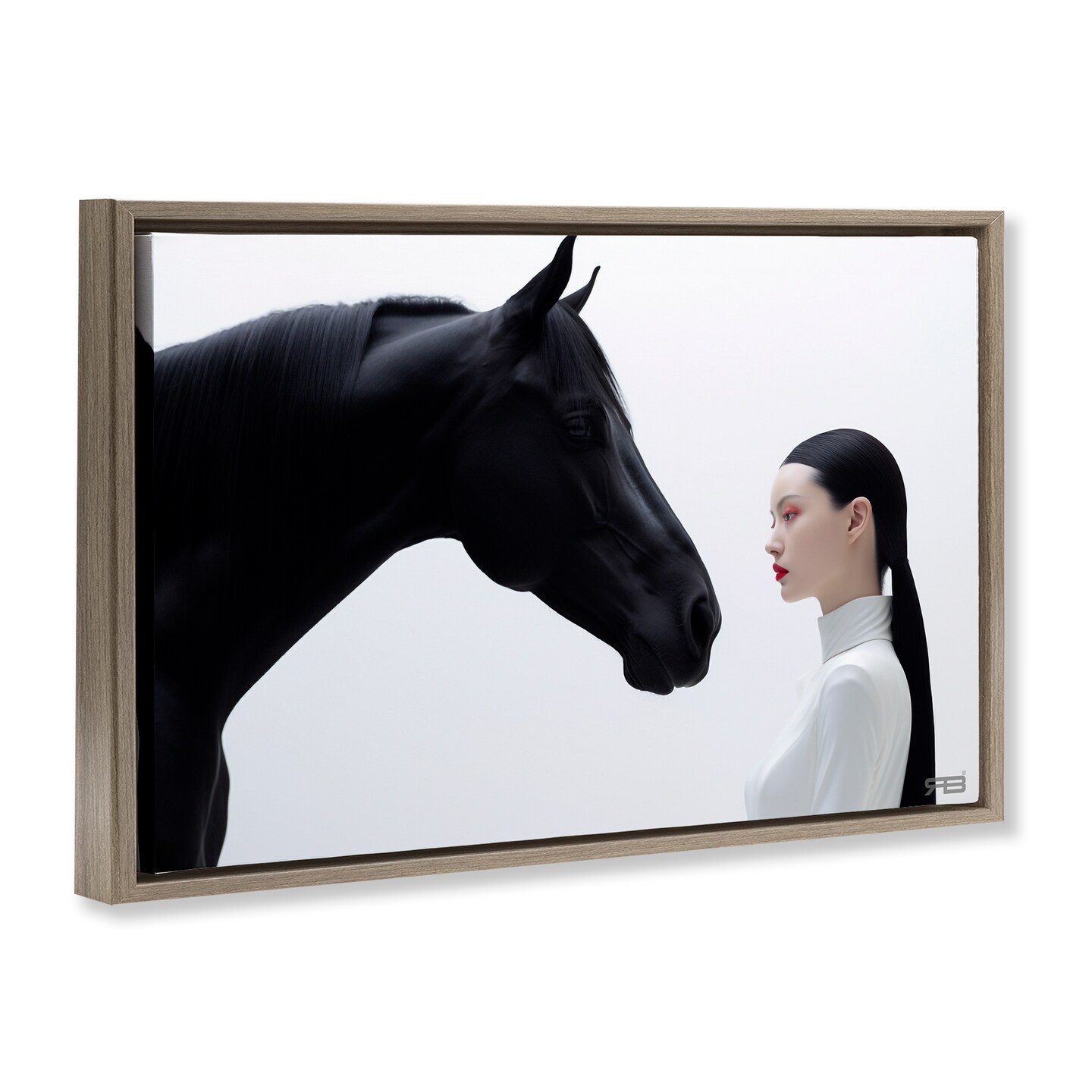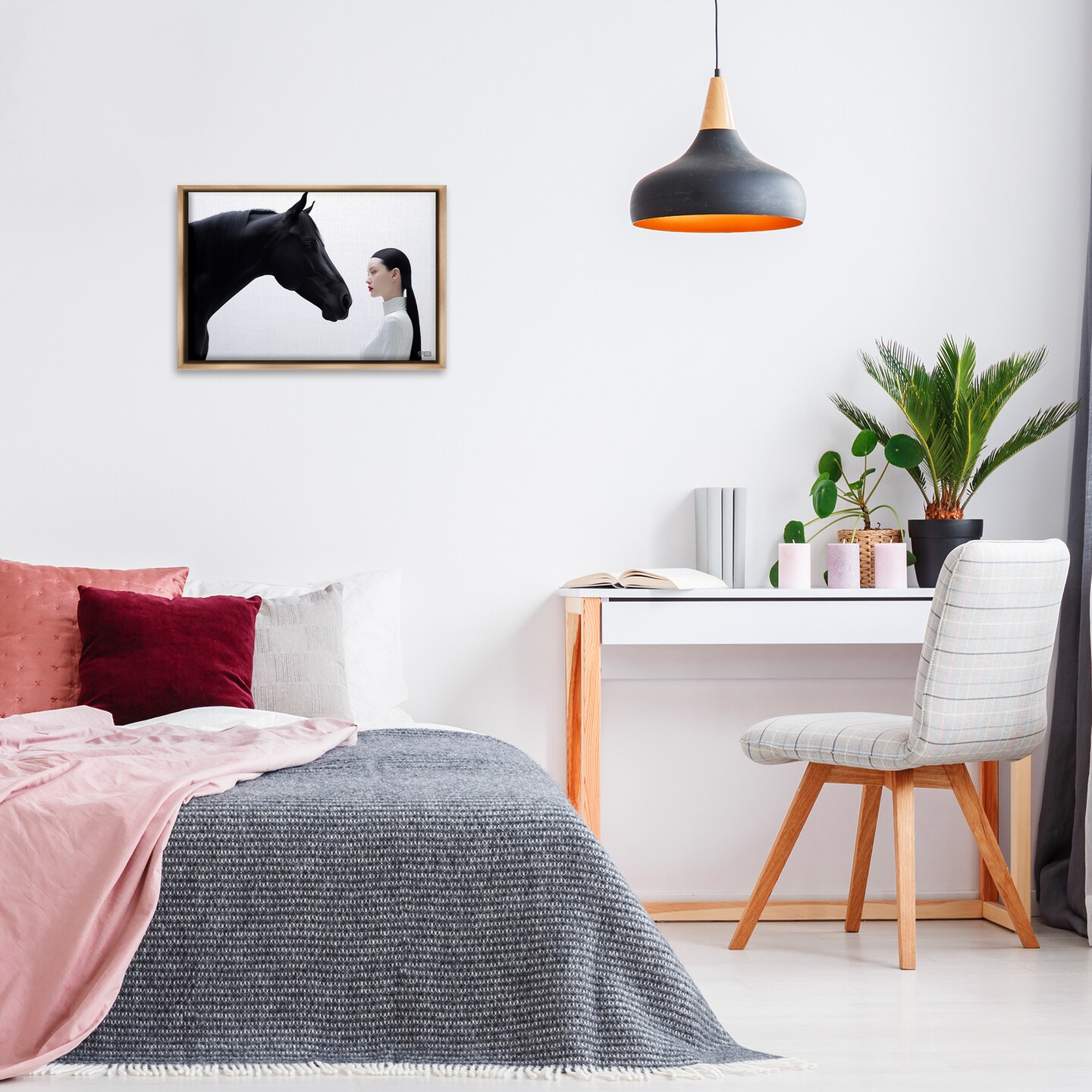 Stupell Industries Sleek Black Horse & Girl Framed Floater Canvas Wall Art Design by RB