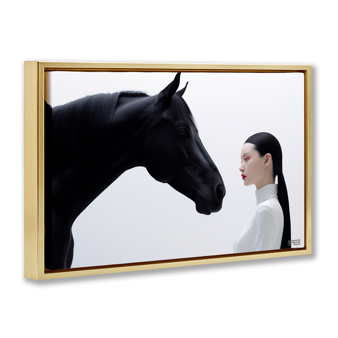 Stupell Industries Sleek Black Horse & Girl Framed Floater Canvas Wall Art Design by RB