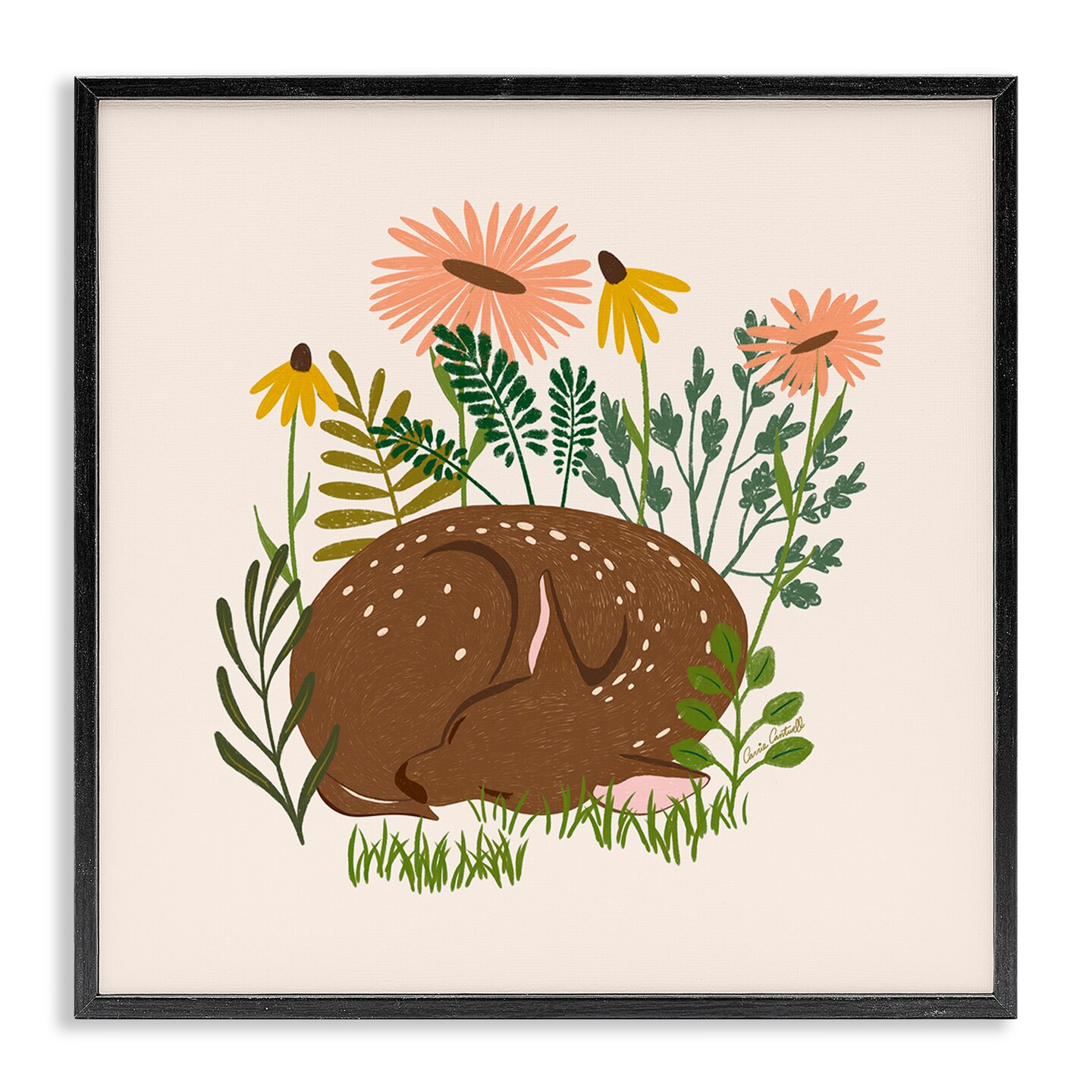 Stupell Industries Sleeping Deer Among Daisies Framed Giclee Wall Art Design by Carrie Cantwell