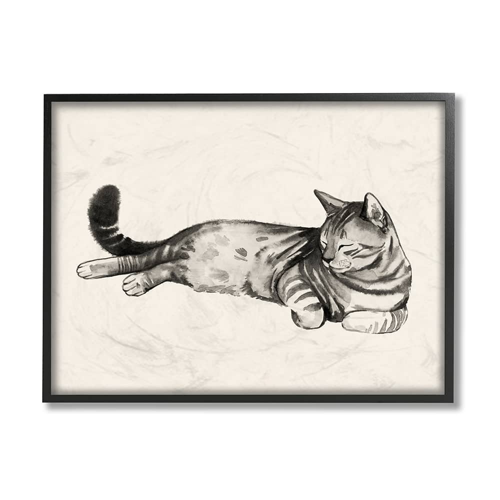 Stupell Industries Sleeping Striped Cat Minimal Relaxed Pet in Black Frame Wall Art