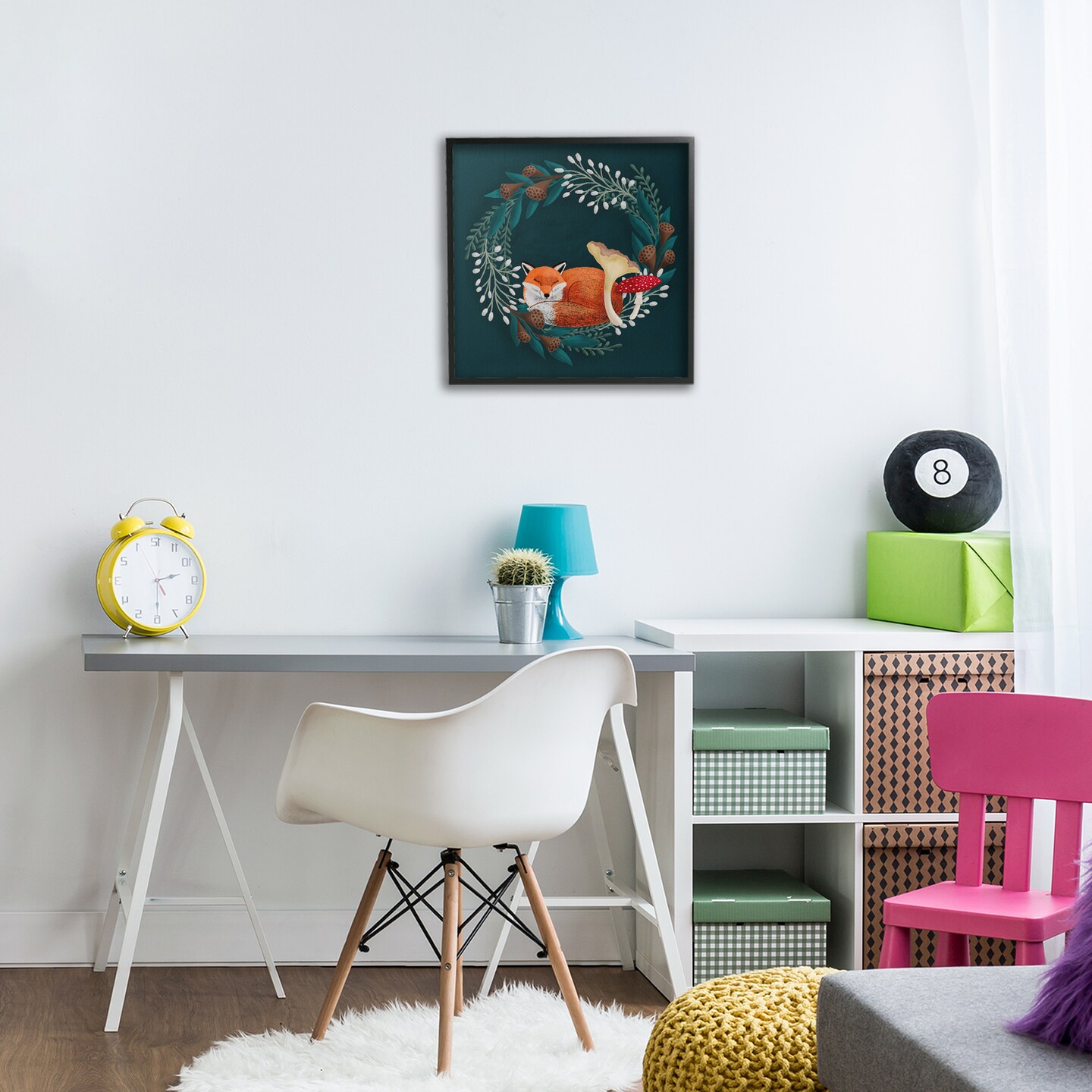 Stupell Industries Sleepy Fox in Botanical Wreath Framed Giclee, design by Metka Hiti