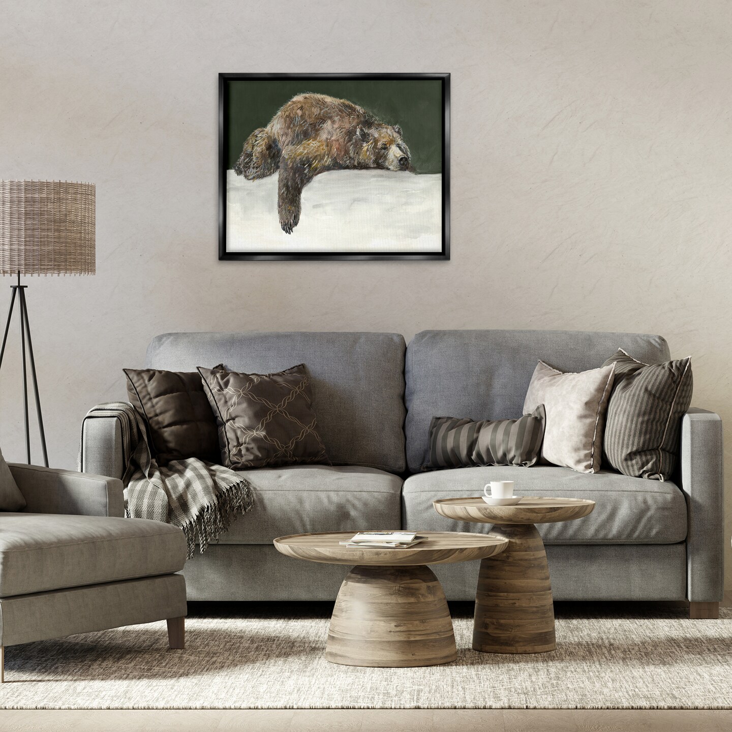 Stupell Industries Sleepy Woodland Bear Framed Floater Canvas Wall Art Design by Jacob Q