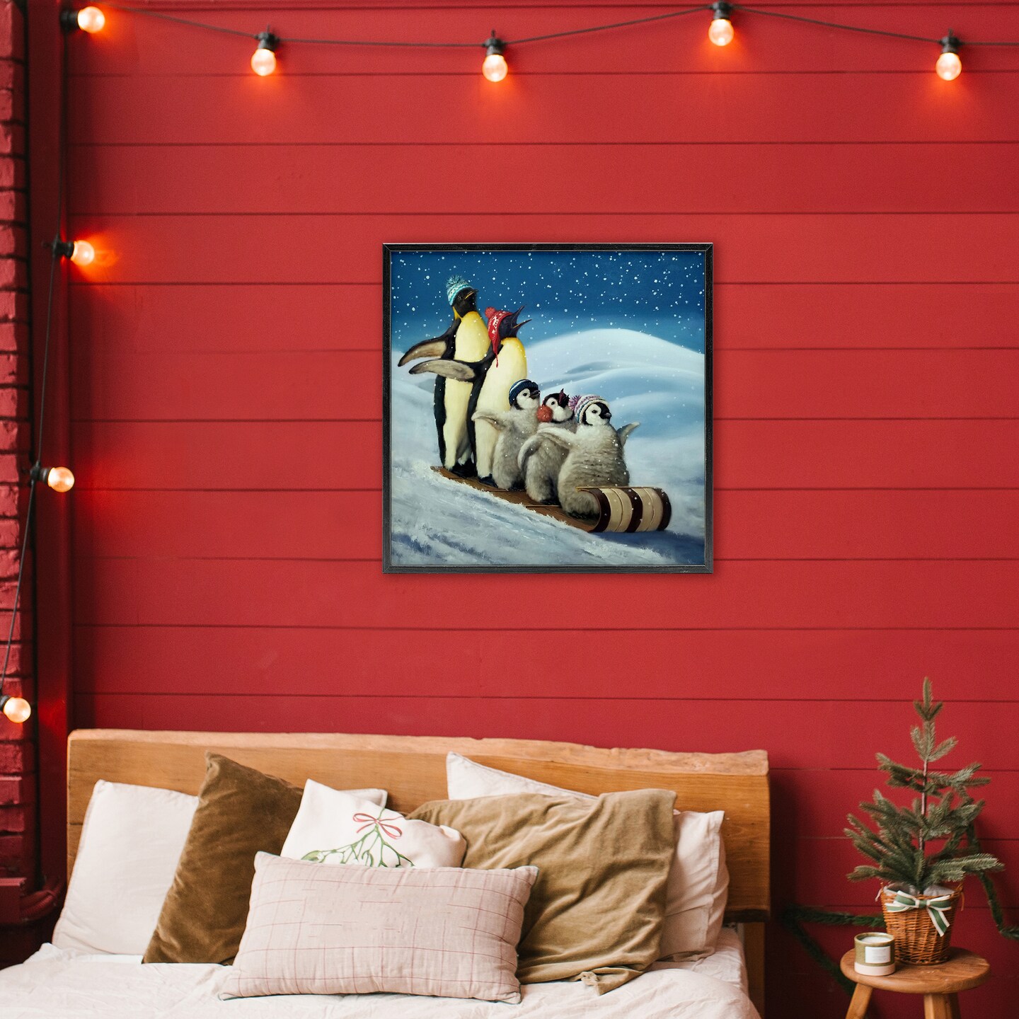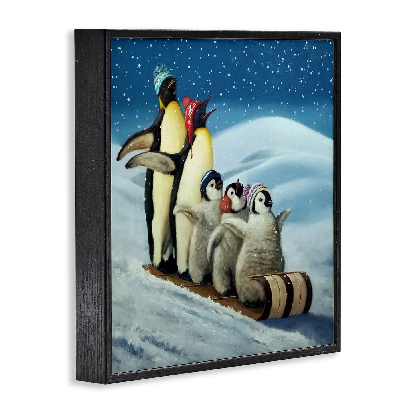 Stupell Industries Sleigh Ride Snowy Penguins Framed Giclee, design by Lucia Heffernan