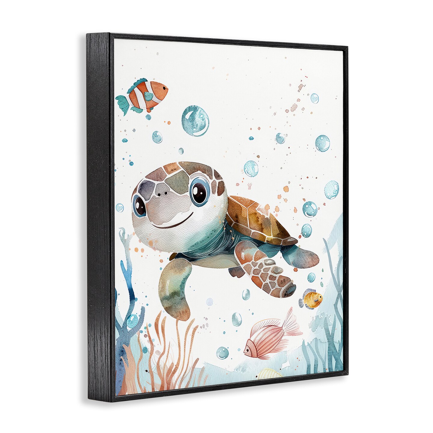 Stupell Industries Smiling Baby Turtle Framed Giclee Wall Art Design by Franklyn Gregory