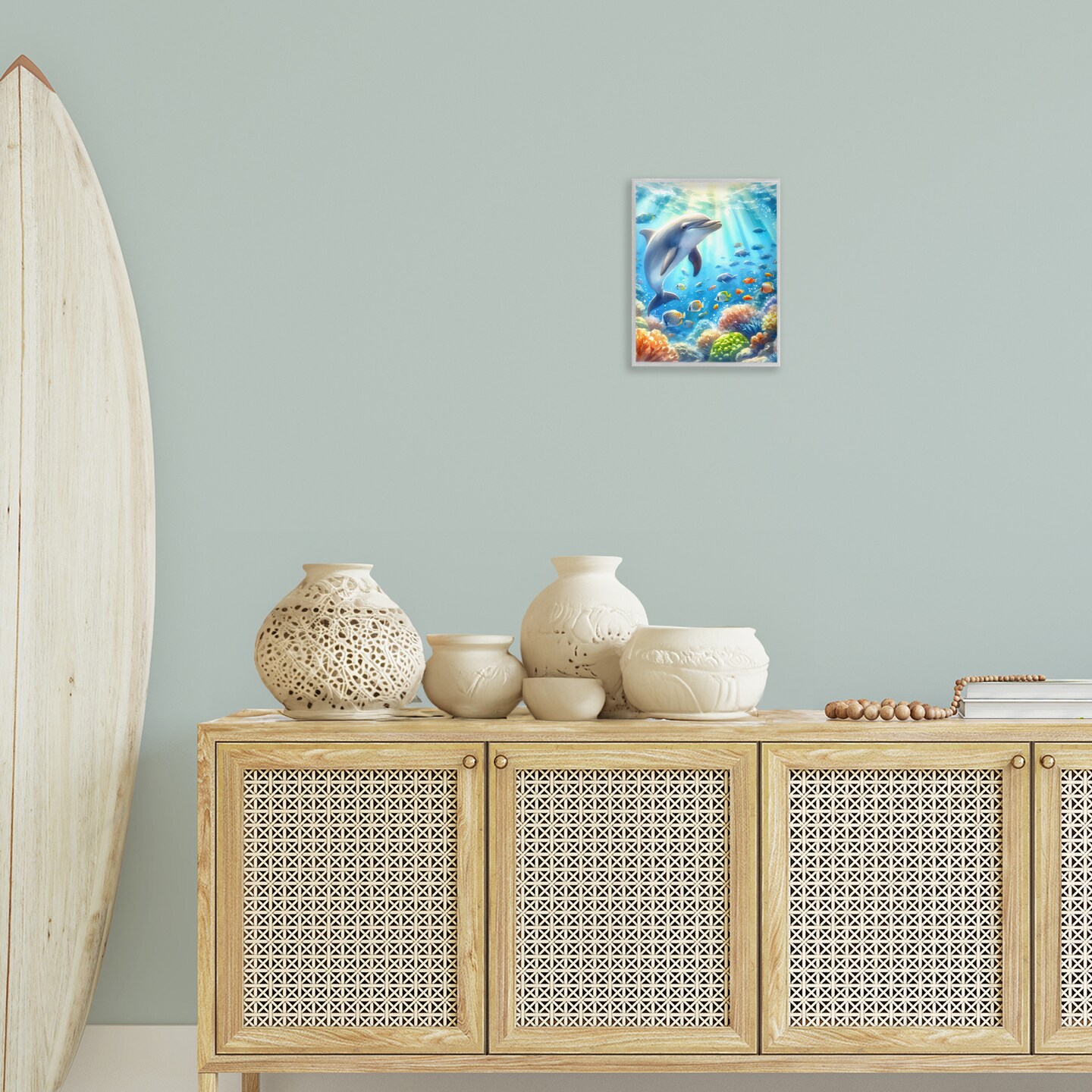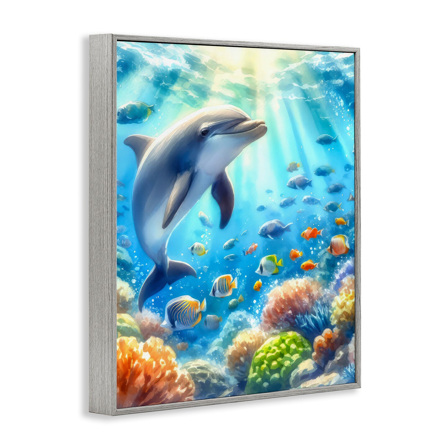 Stupell Industries Smiling Dolphin Under Sea Framed Giclee Wall Art Design by LSR Design Studio