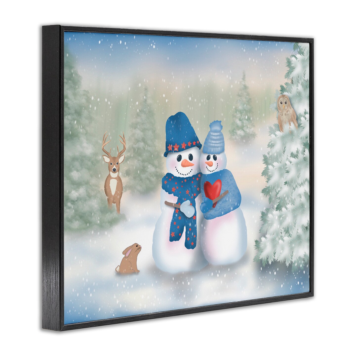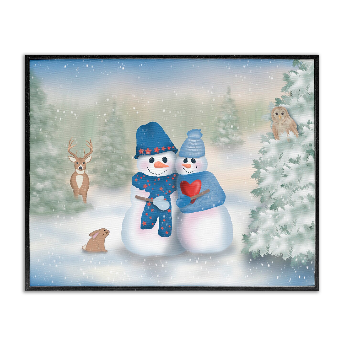 Stupell Industries Snow In Love Snowman Couple Black Framed Giclee Art, design by Lynn Kellan