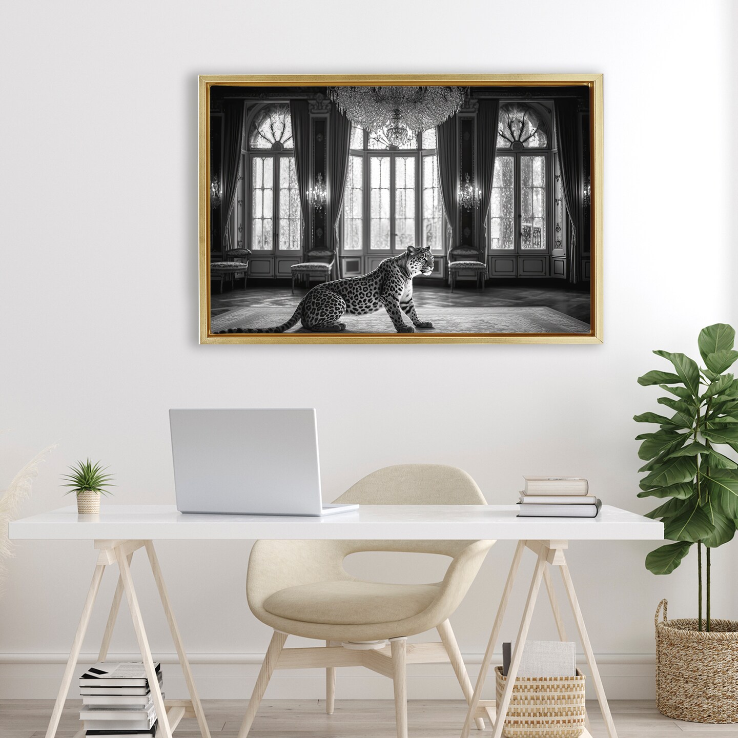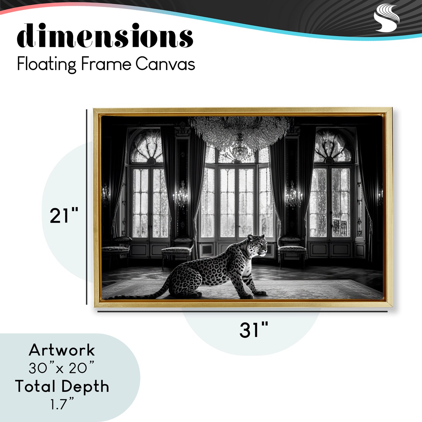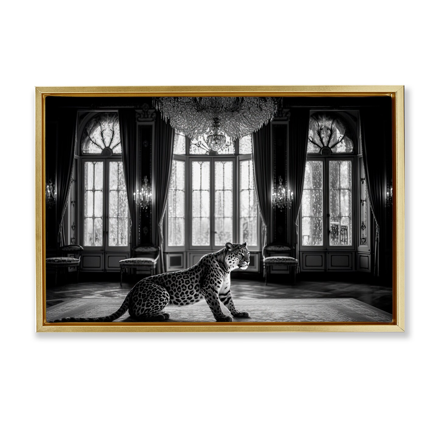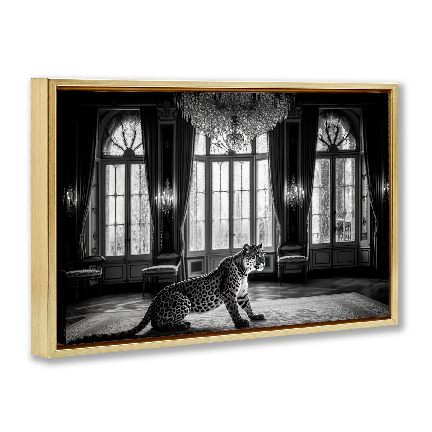 Stupell Industries Snow Leopard in Opulent Mansion Floating Frame, design by Decent Exposures