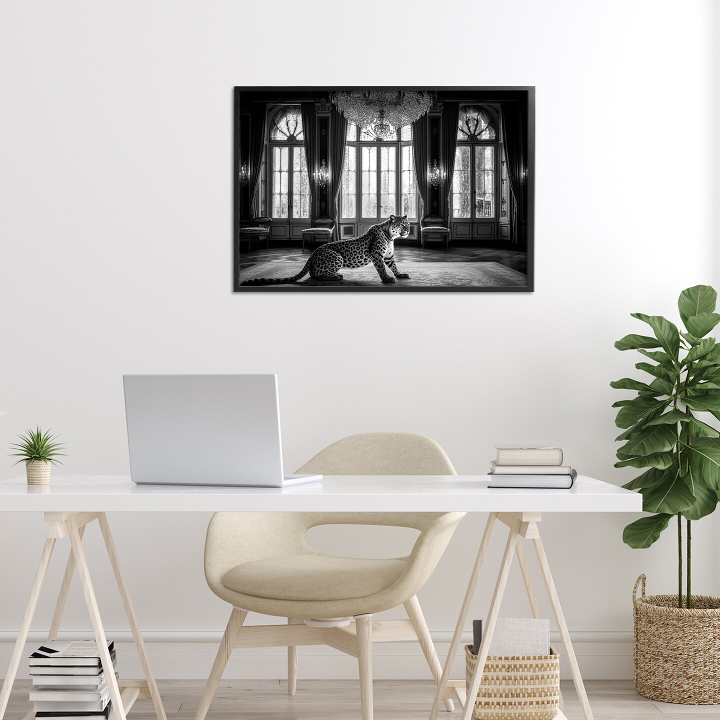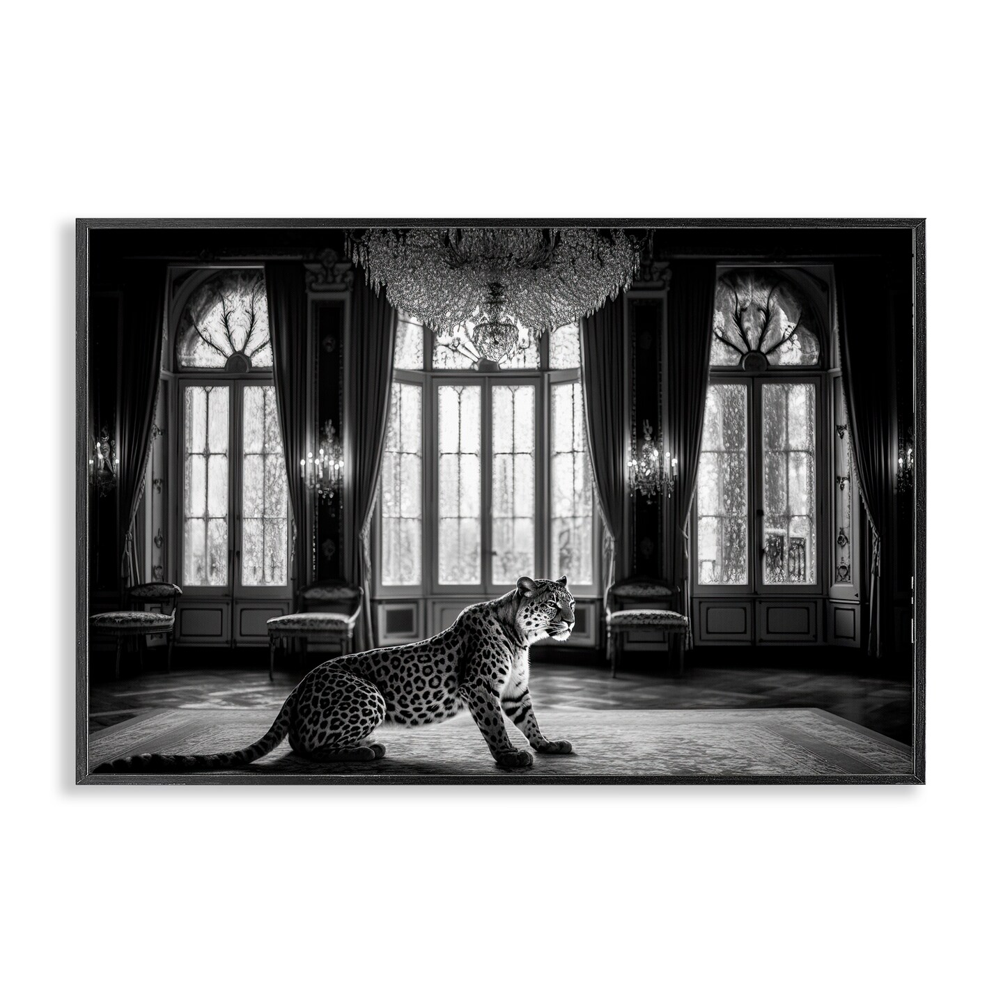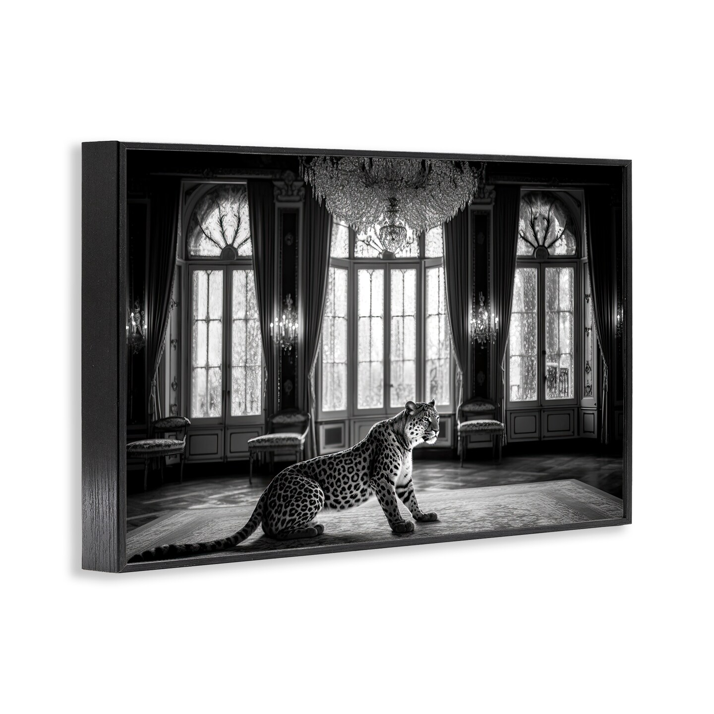 Stupell Industries Snow Leopard in Opulent Mansion Framed Giclee, design by Decent Exposures