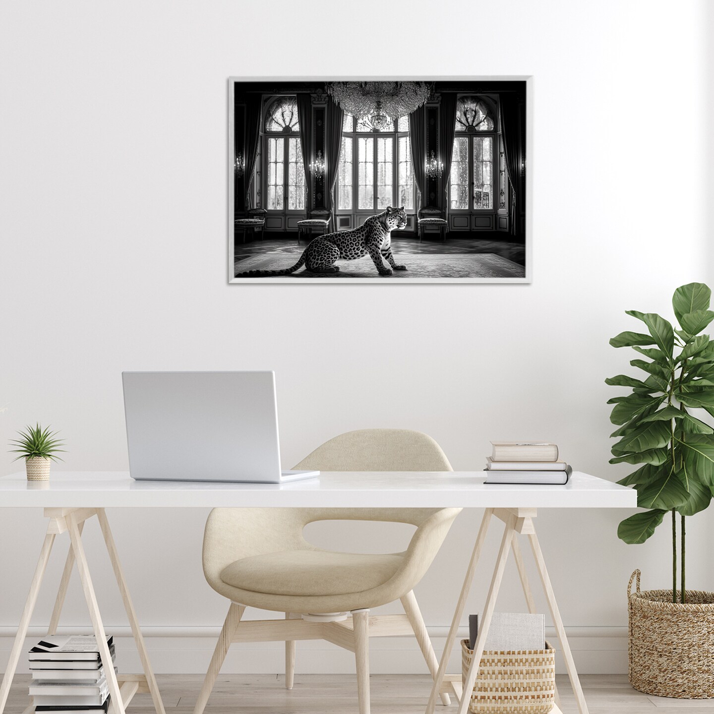 Stupell Industries Snow Leopard in Opulent Mansion Framed Giclee, design by Decent Exposures