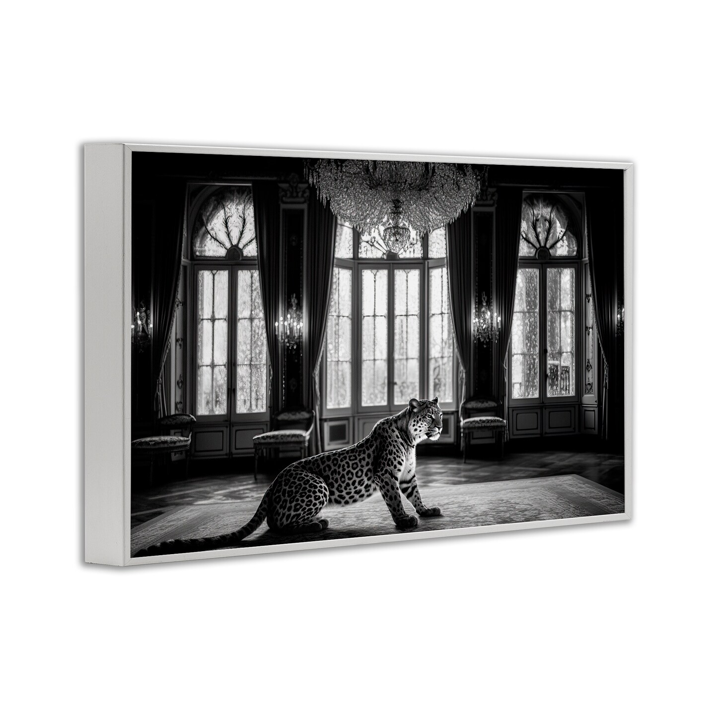 Stupell Industries Snow Leopard in Opulent Mansion Framed Giclee, design by Decent Exposures