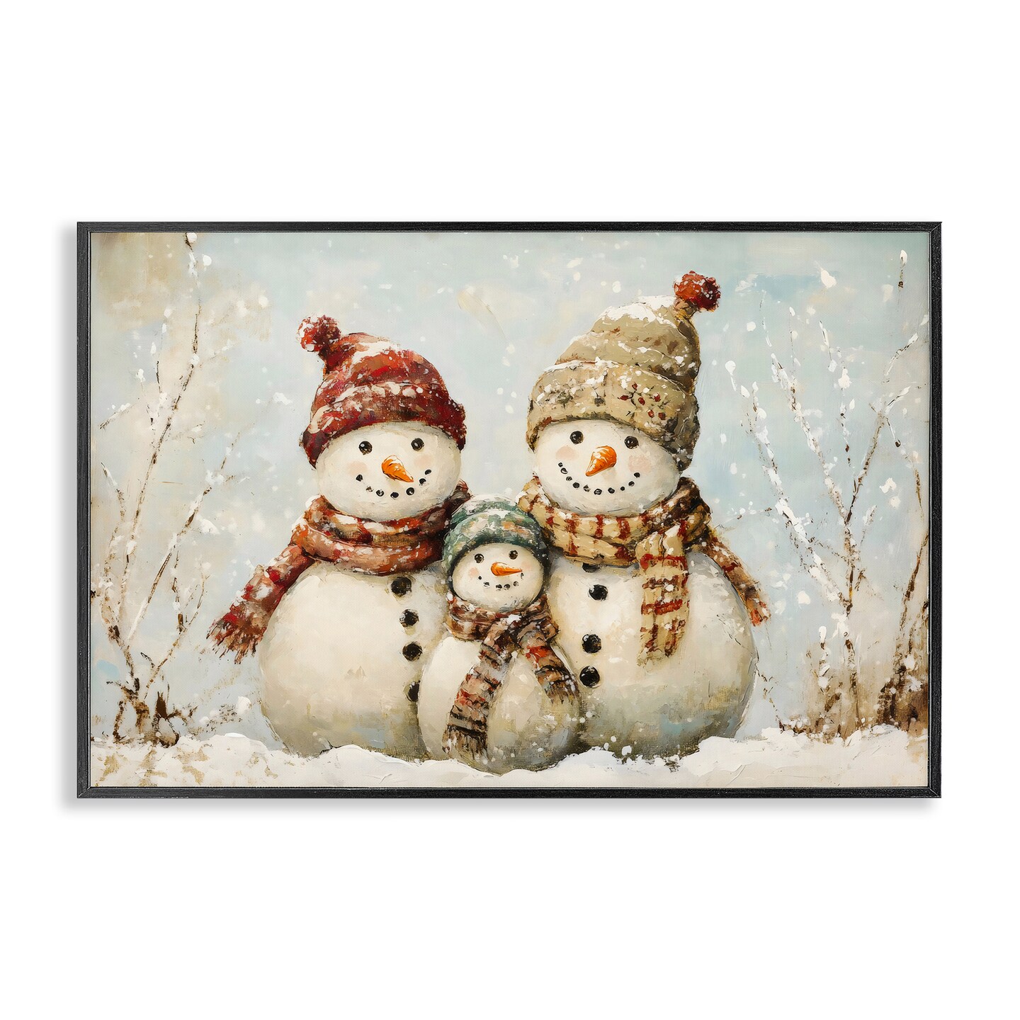 Stupell Industries Snowman Family Of Three Framed Giclee, design by Petal Prints Design