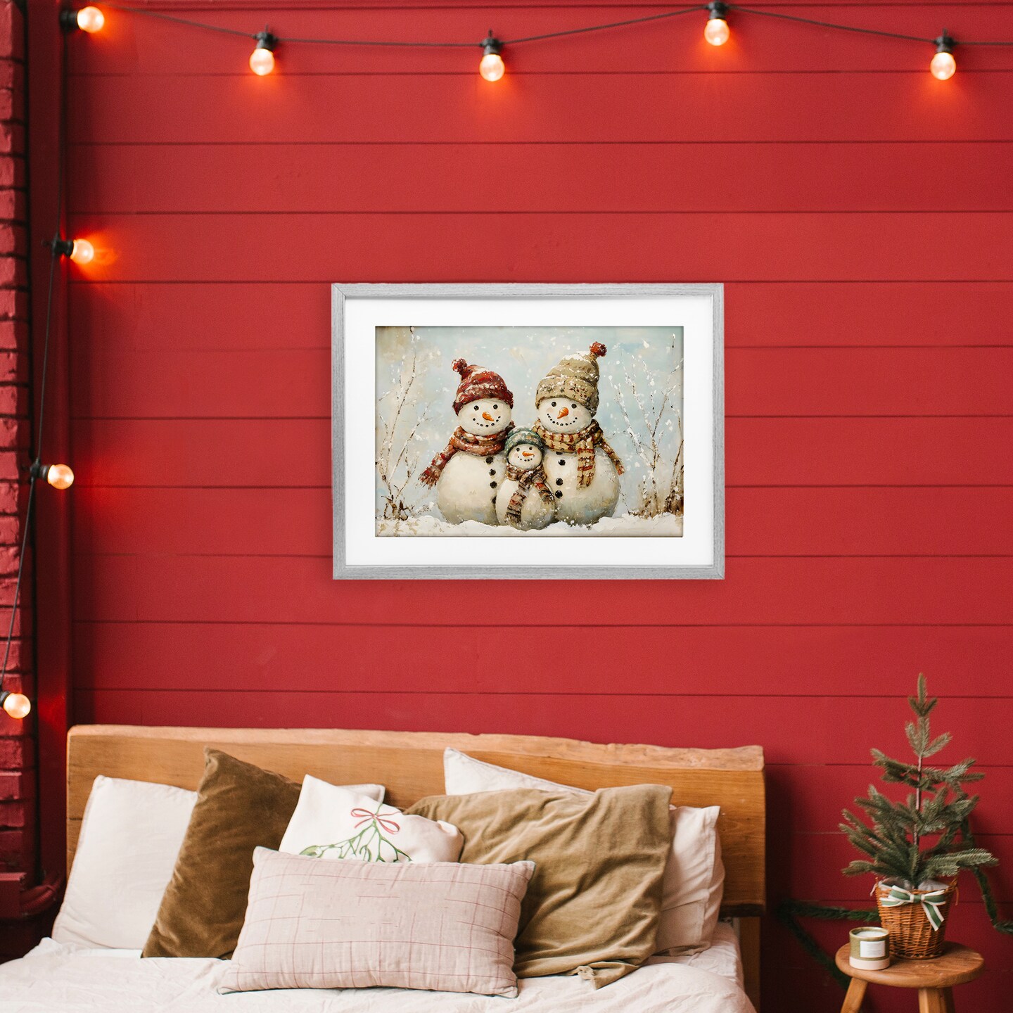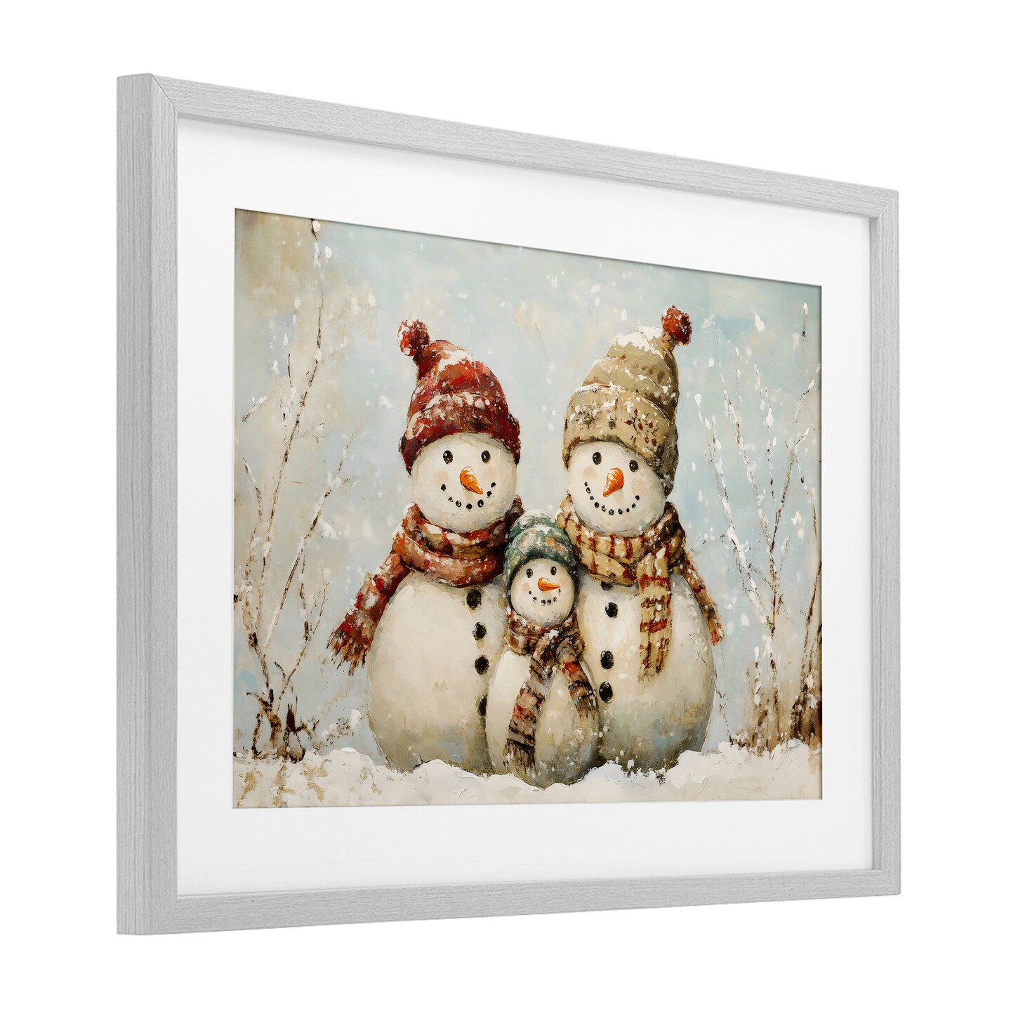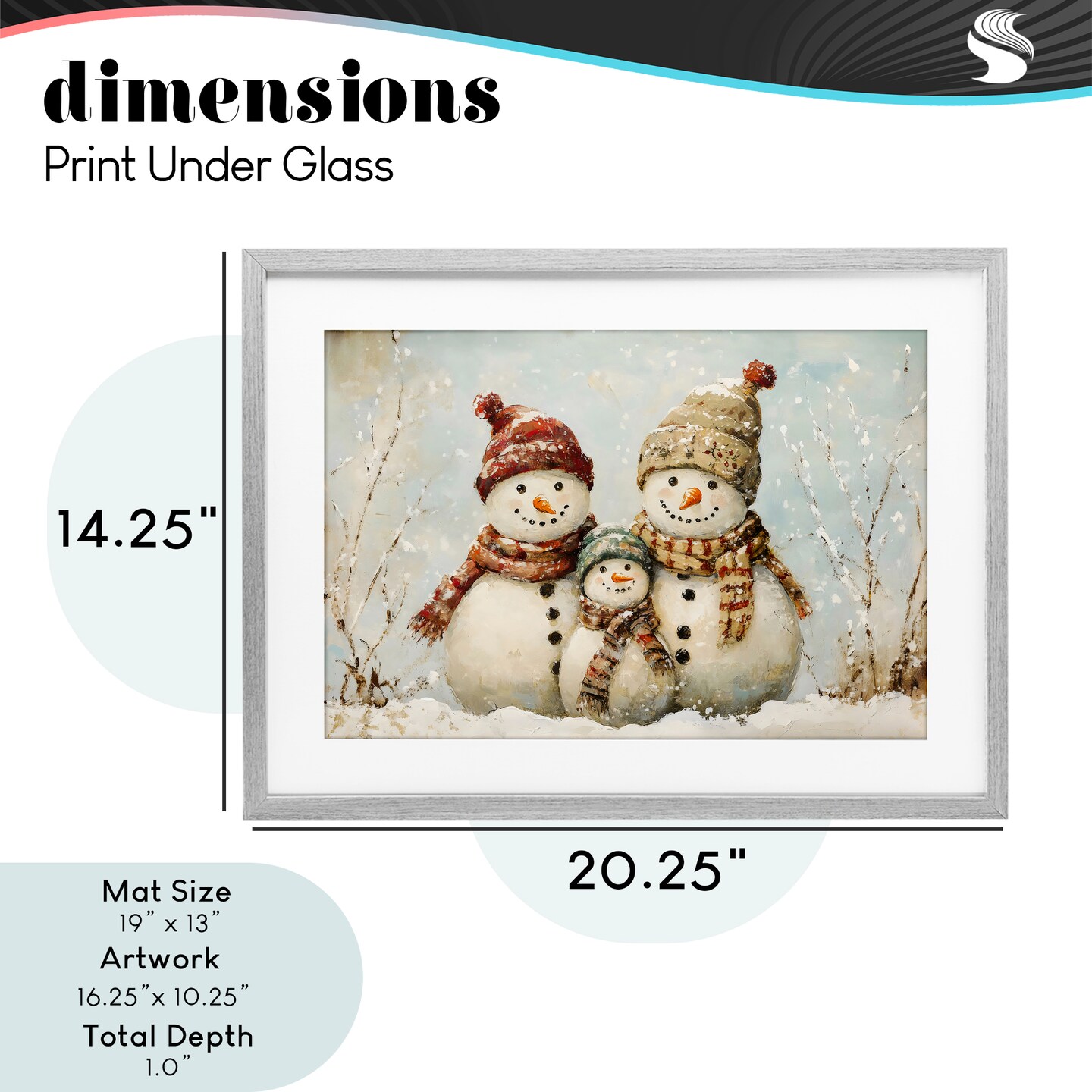 Stupell Industries Snowman Family Of Three Framed Print Under Glass, design by Petal Prints Design