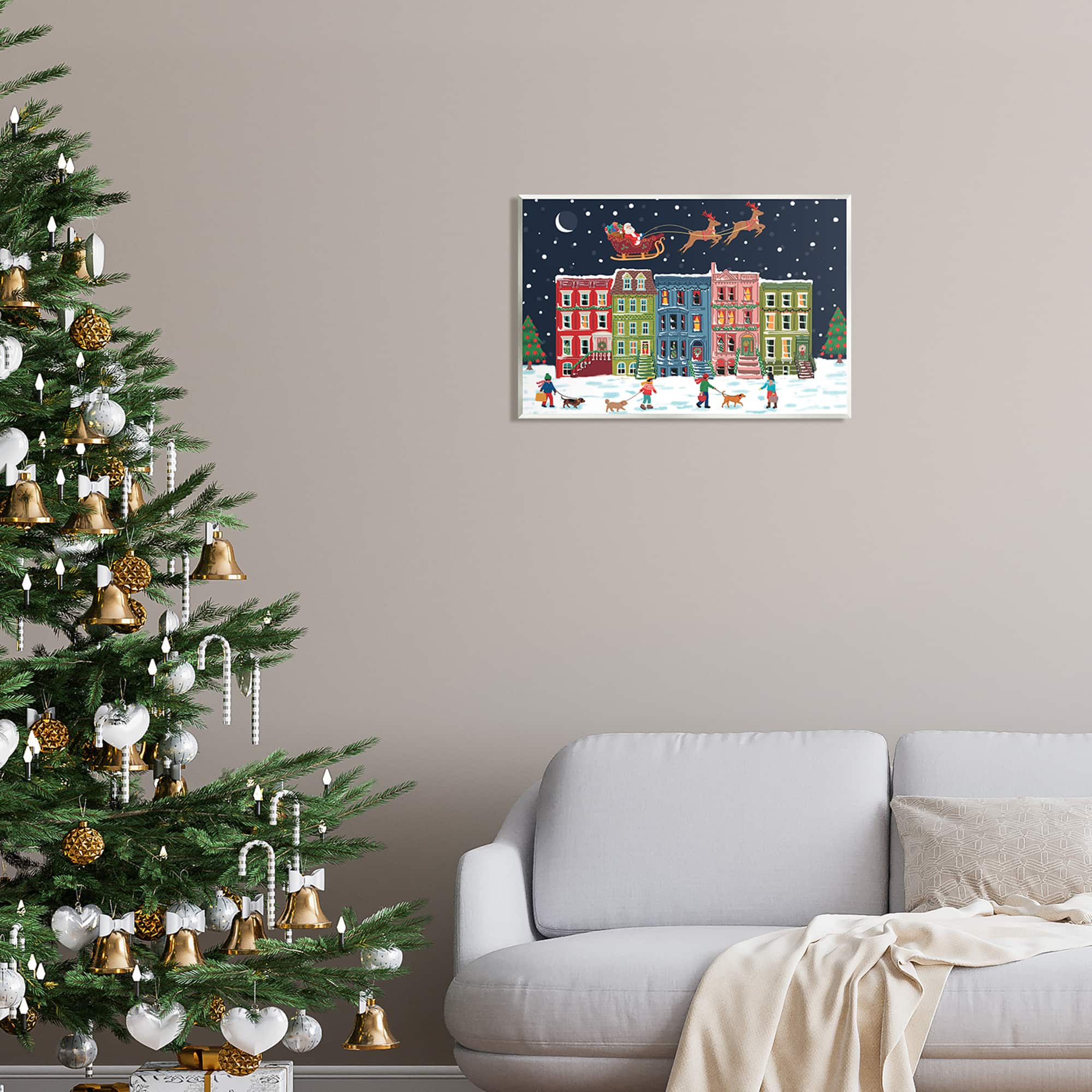 Stupell Industries Snowy Christmas Town Santa Overhead Wall Plaque Art
