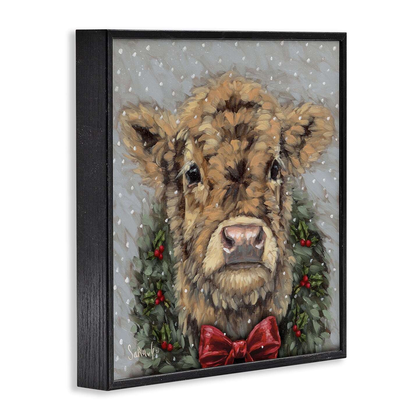 Stupell Industries Snowy Day Christmas Cow Framed Giclee, design by Sara G. Designs