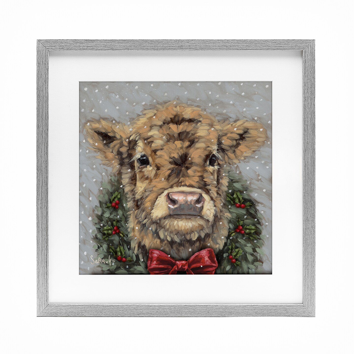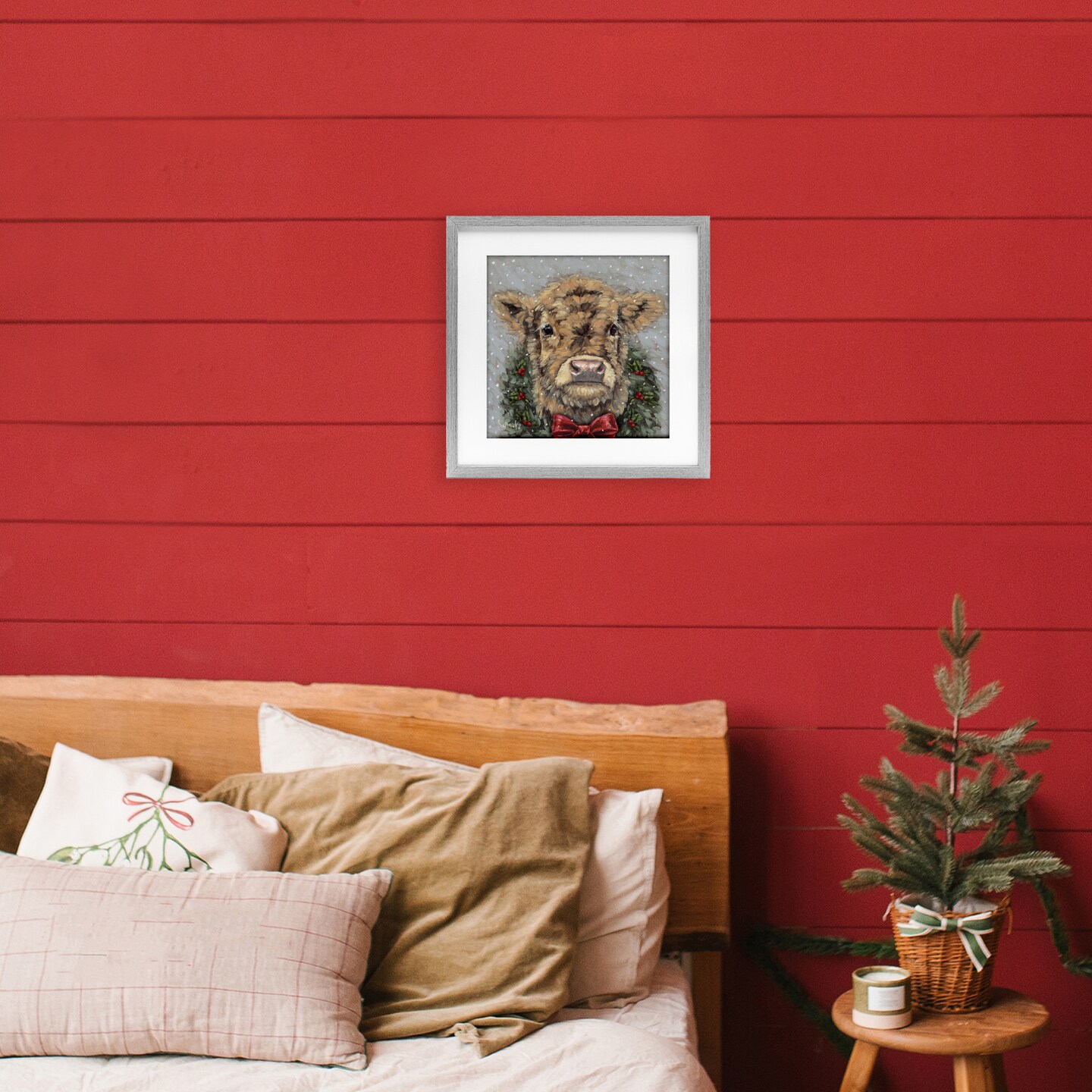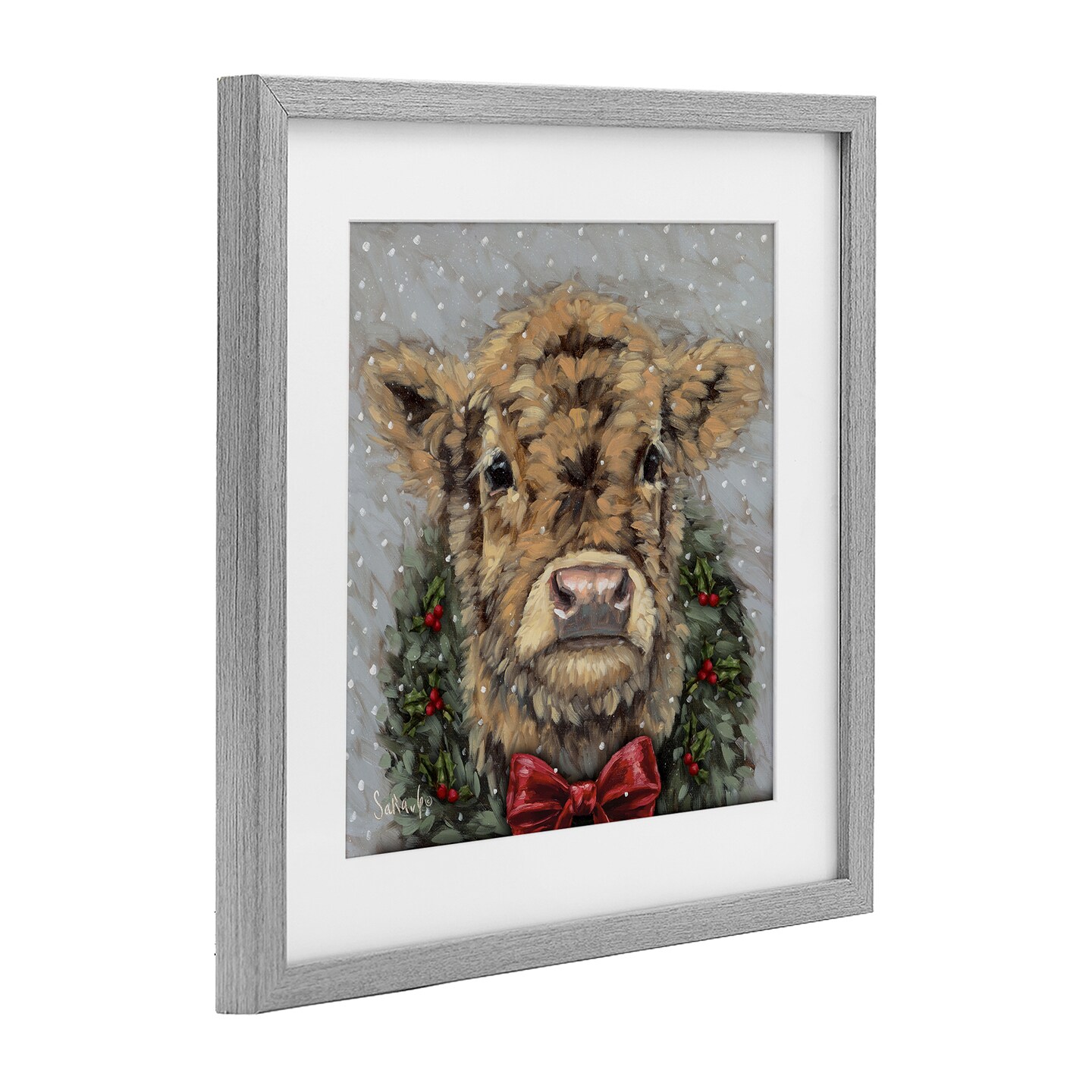 Stupell Industries Snowy Day Christmas Cow Framed Print Under Glass, design by Sara G. Designs