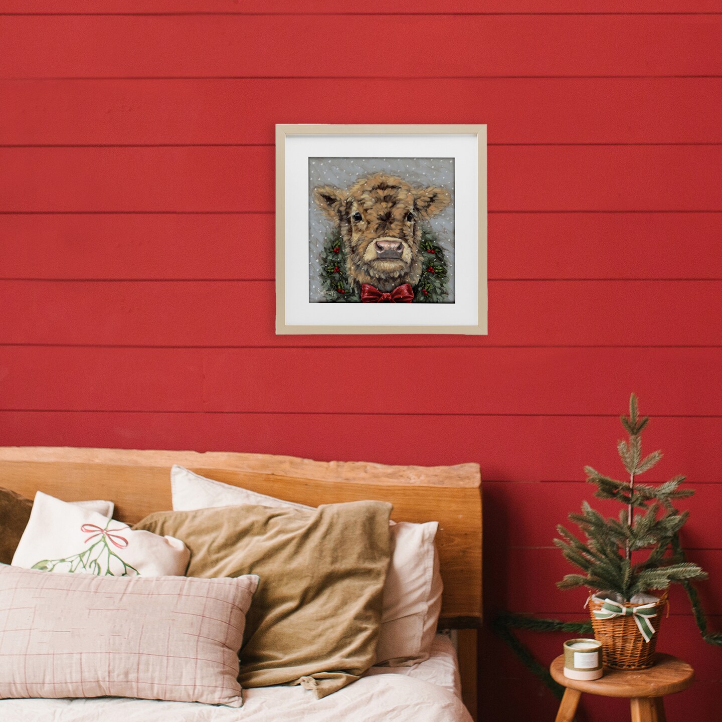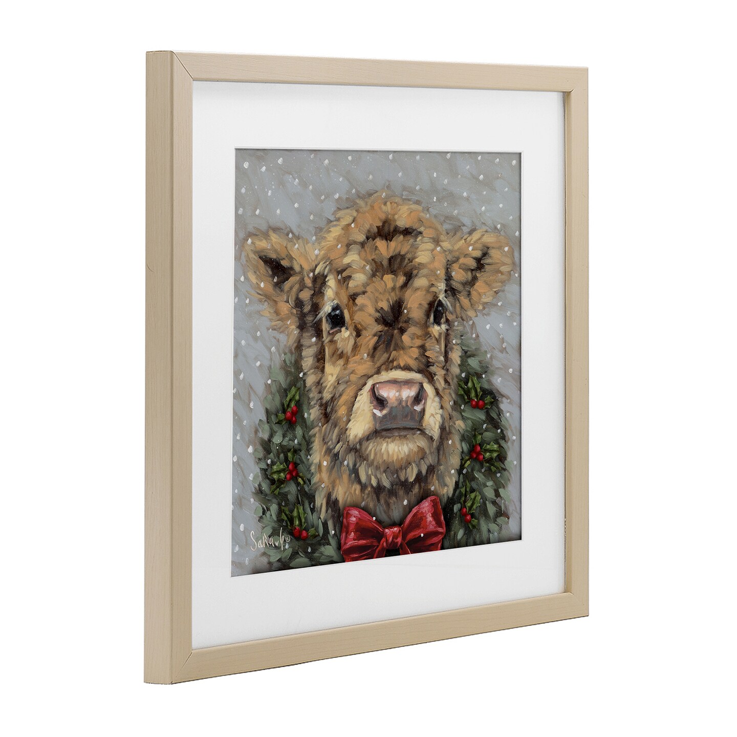 Stupell Industries Snowy Day Christmas Cow Framed Print Under Glass, design by Sara G. Designs