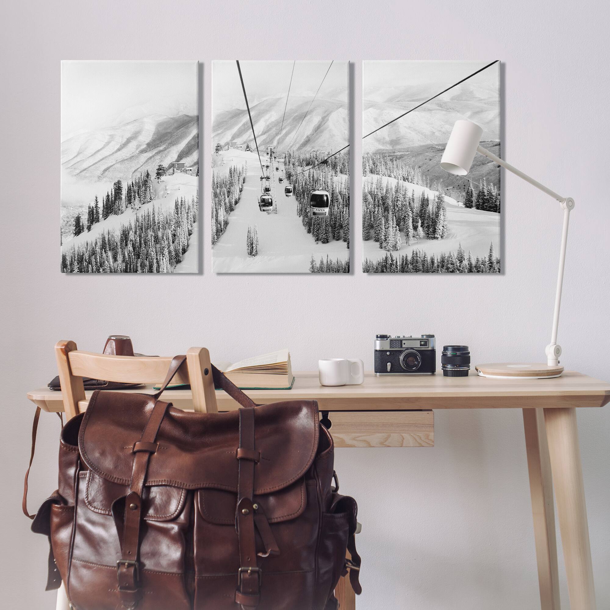 Stupell Industries Snowy Ski Mountain Tops Landscape Gondola Ride Adventure Canvas Wall Art, 16" x 24"