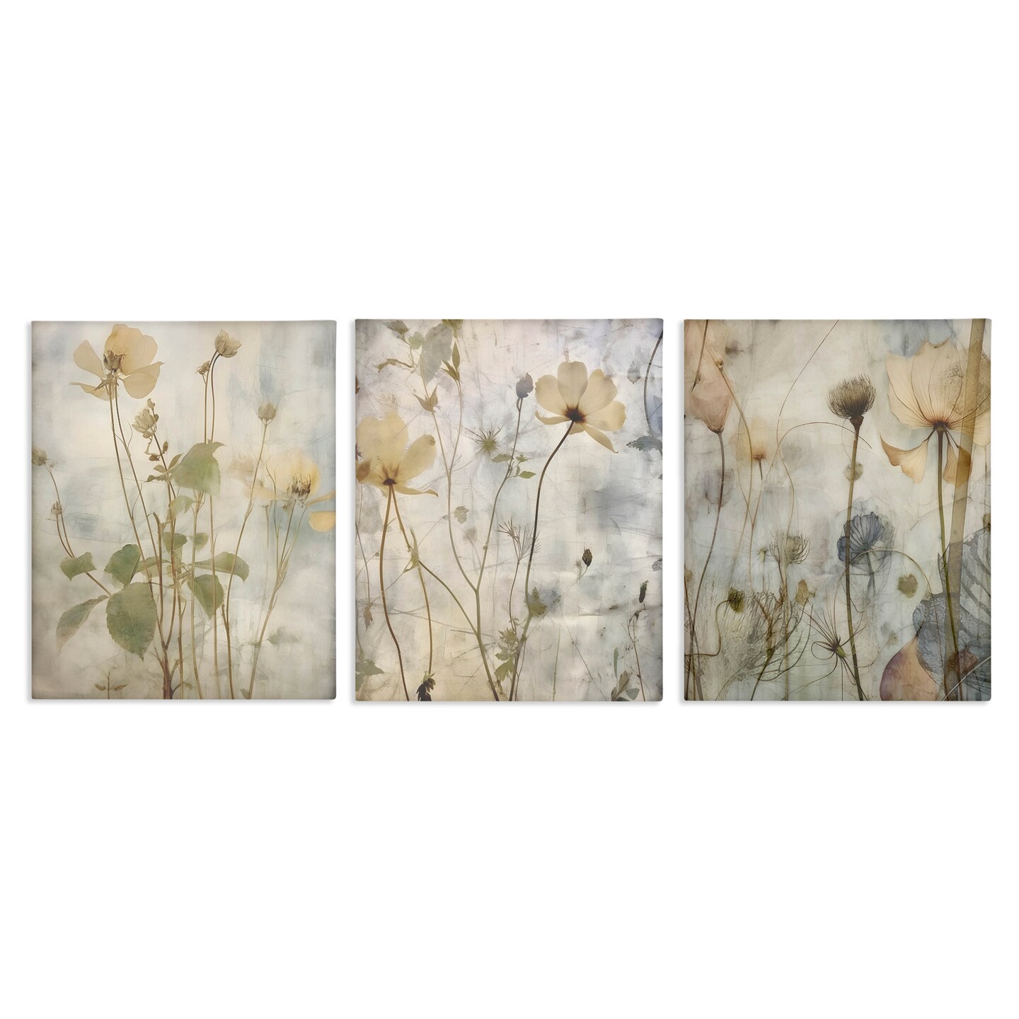 Stupell Industries Soft Blooming Botanicals 3pc Canvas Wall Art Set Design by Lettered and Lined