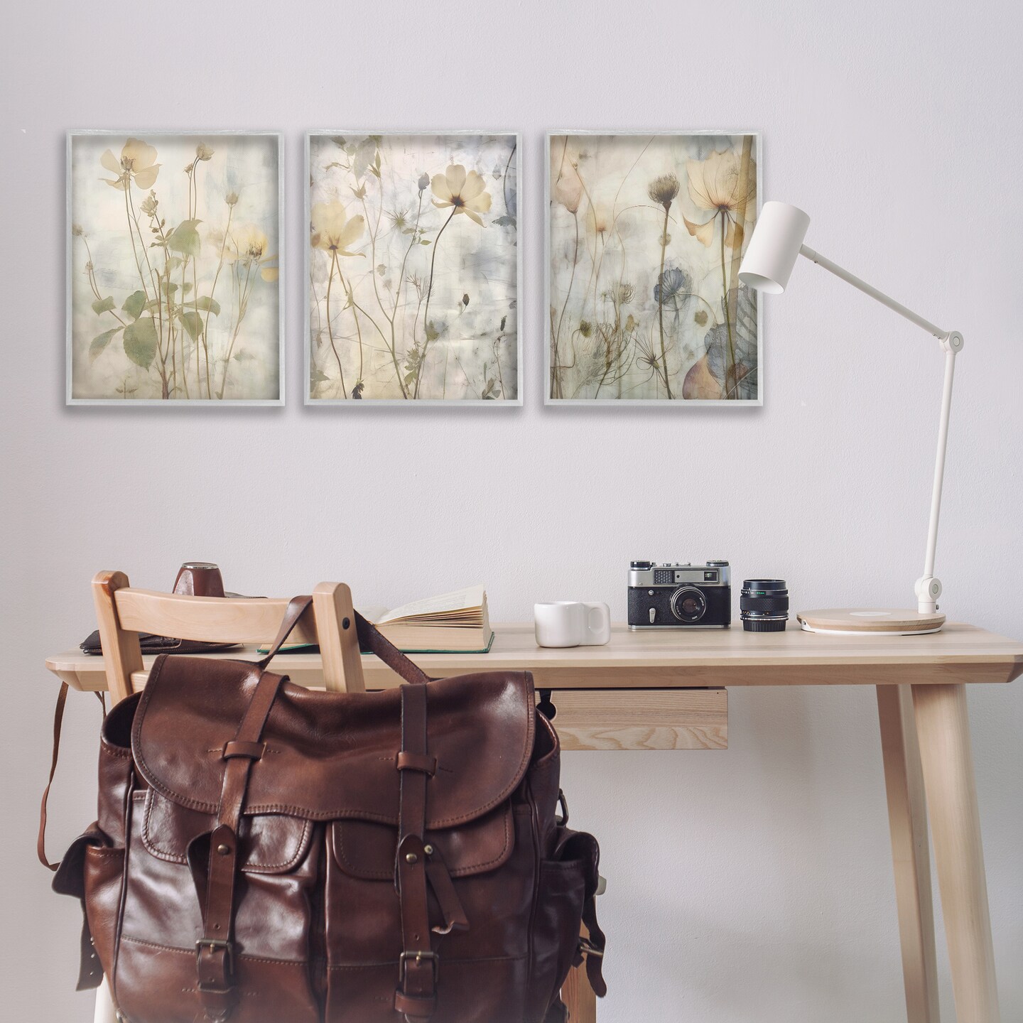 Stupell Industries Soft Blooming Botanicals 3pc Framed Giclee Wall Art Set Design by Lettered and Lined