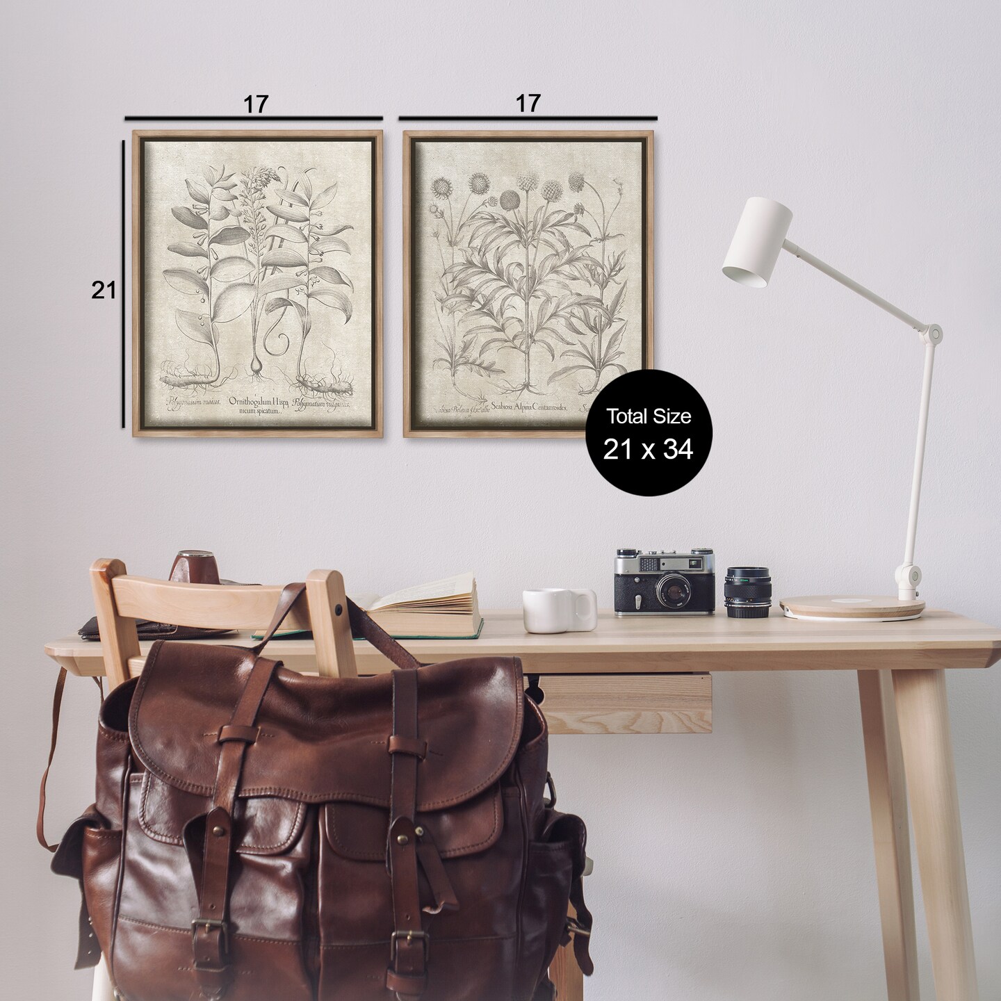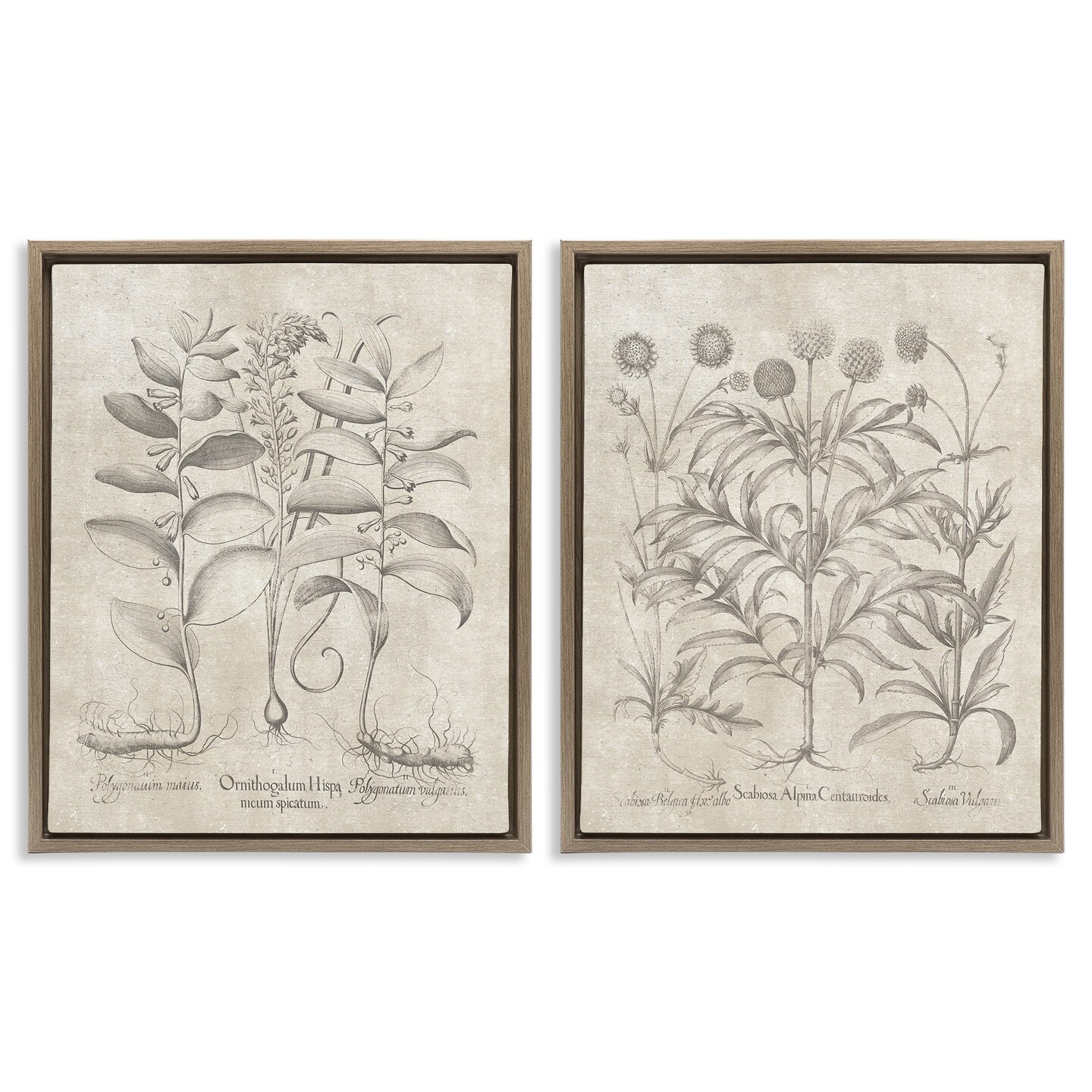 Stupell Industries Soft Botanical Study 2 pc Framed Floater Canvas Wall Art Set Design by Lettered and Lined