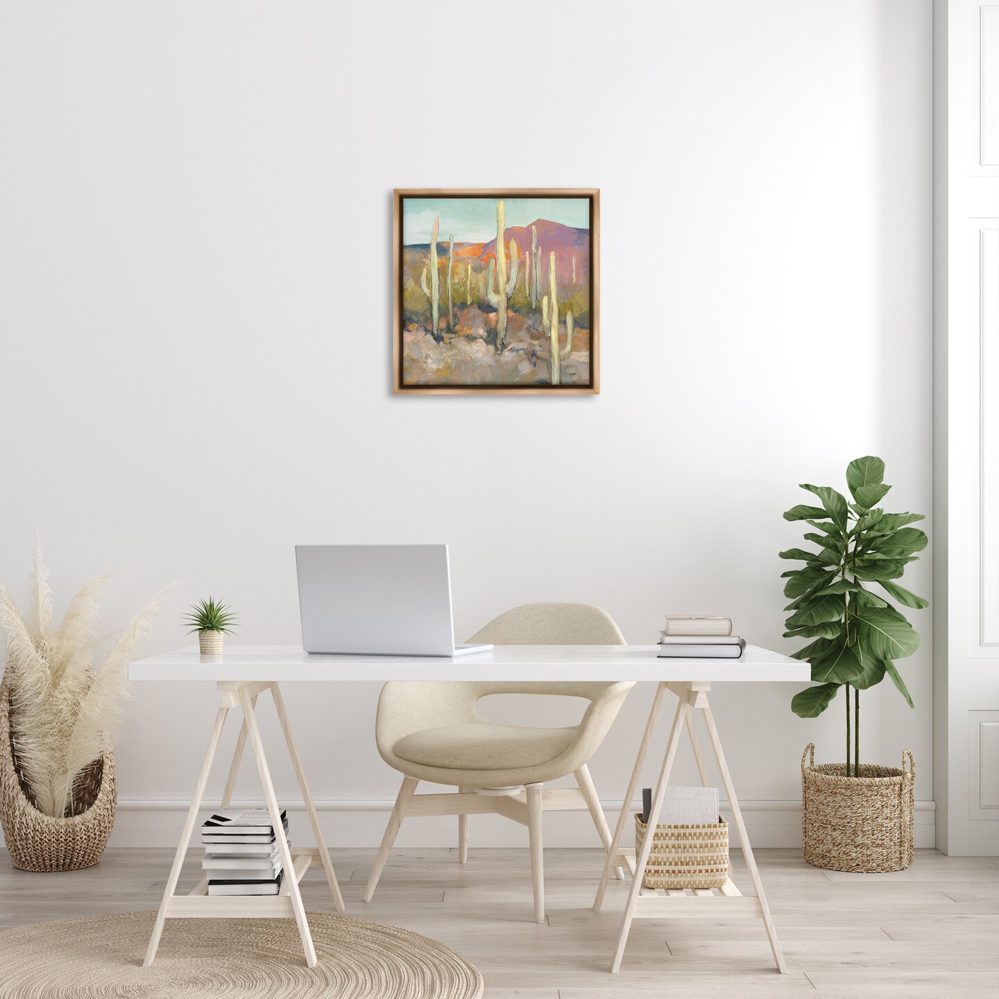 Stupell Industries Soft Cactus Desert Landscape Framed Floater Canvas Wall Art