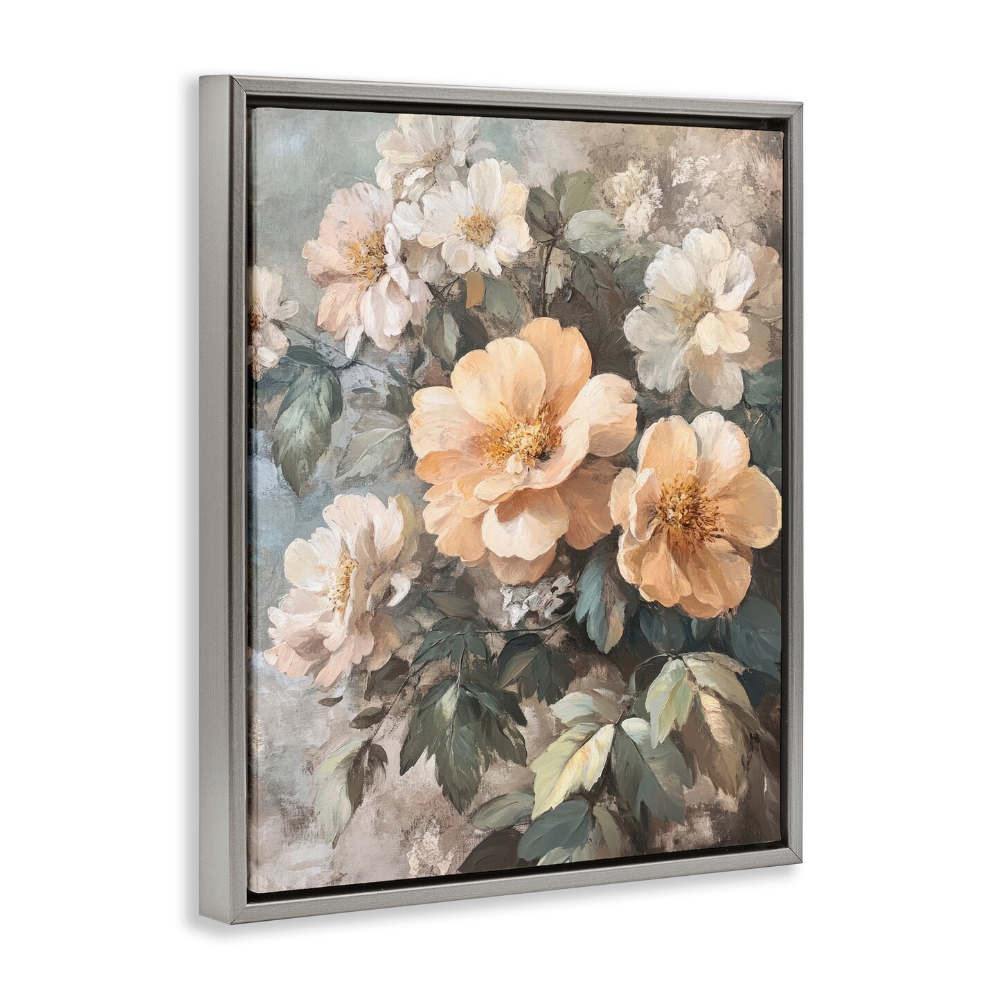 Stupell Industries Soft Floral Arrangement Floater Framed Canvas Wall Art Design by Petal Prints Design