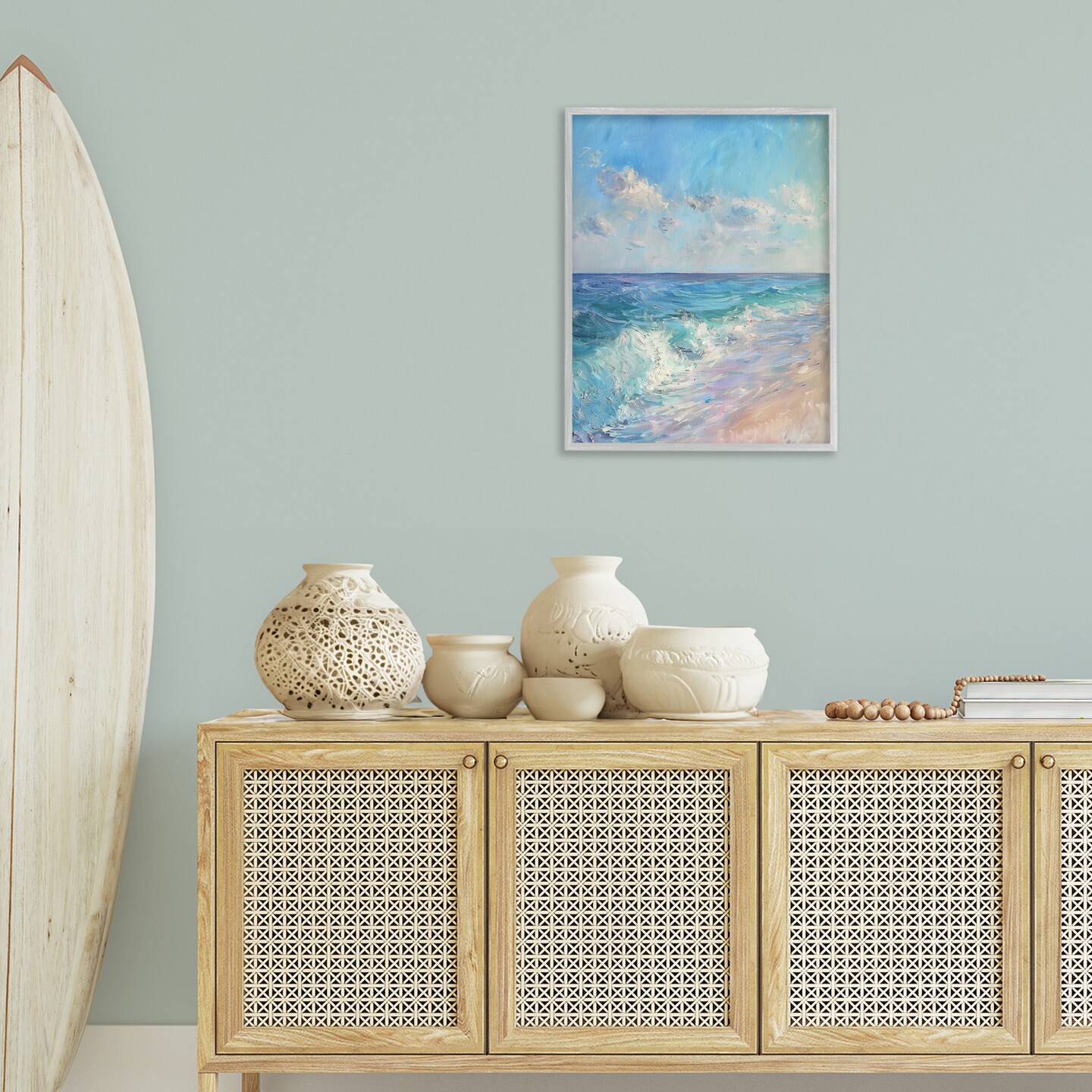 Stupell Industries Soft Ocean Beach Framed Giclee Wall Art Design by LSR Design Studio