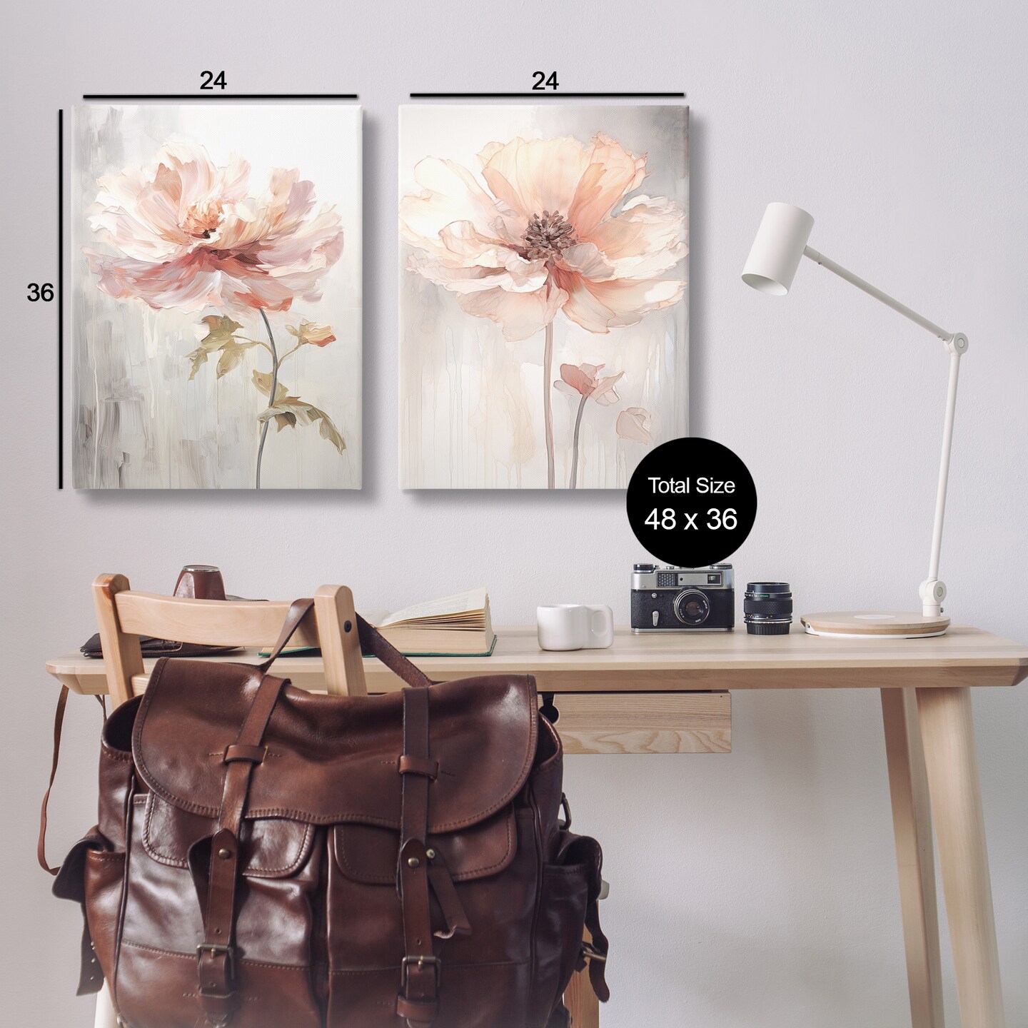 Stupell Industries Soft Pink Budding Flowers 2pc Canvas Wall Art Set Design by Raymond Powers