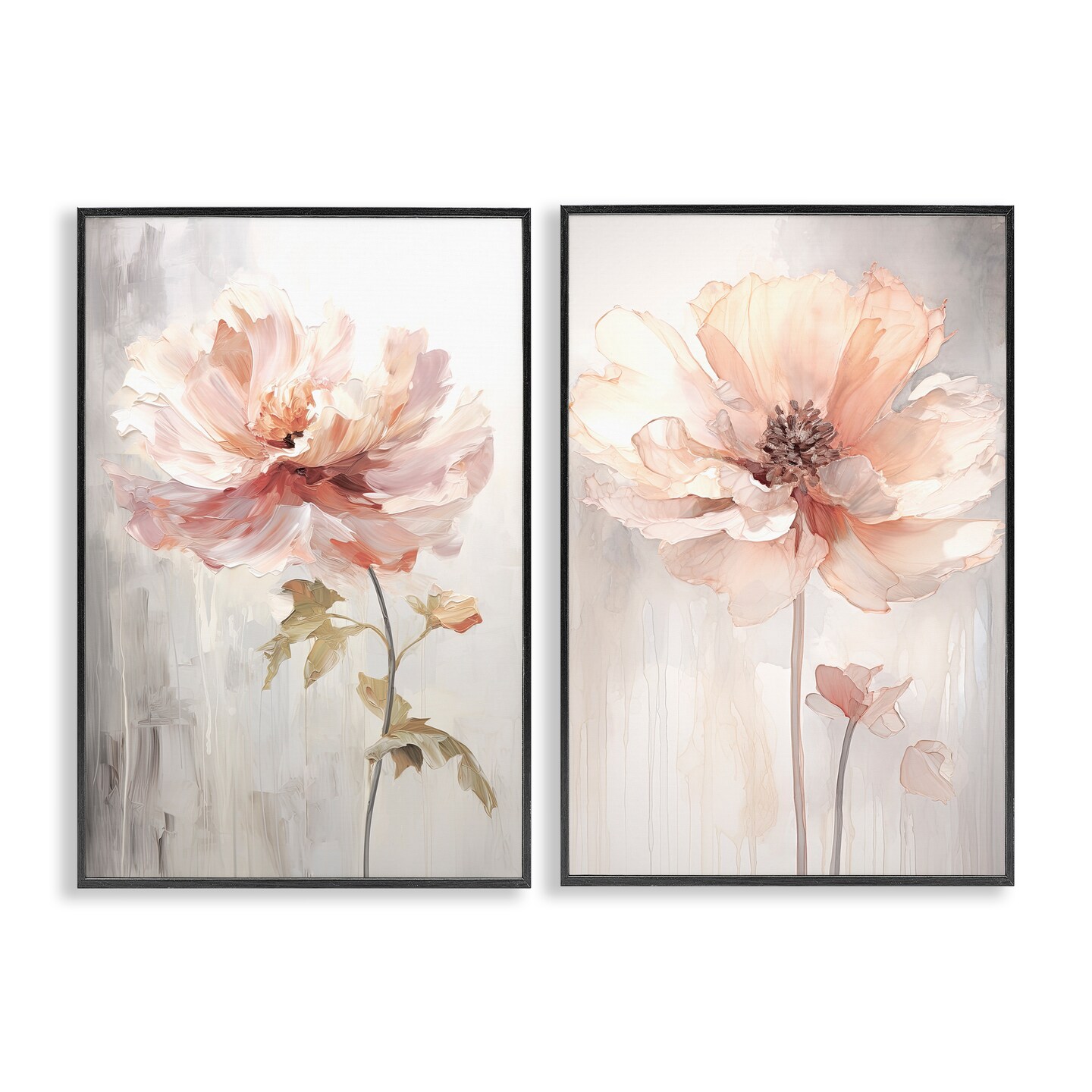 Stupell Industries Soft Pink Budding Flowers 2pc Framed Giclee Wall Art Set Design by Raymond Powers