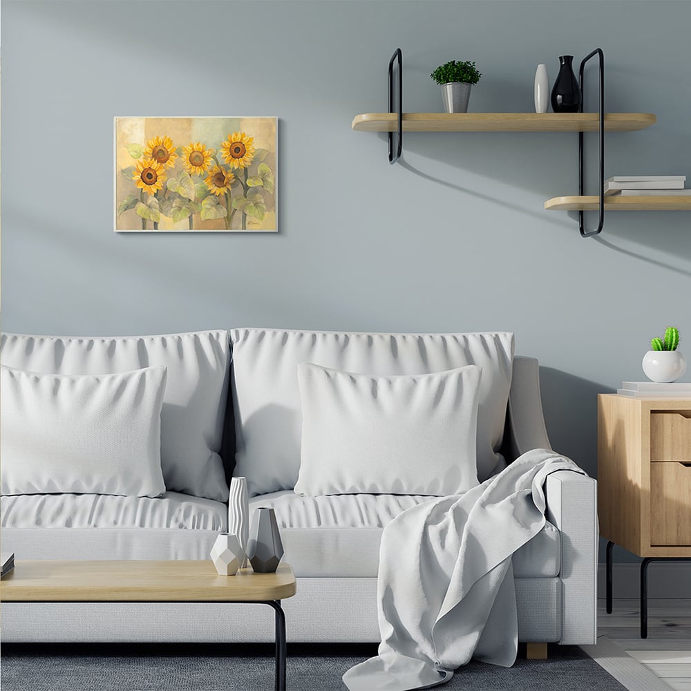 Stupell Industries Soft Vintage Sunflower Floral Field Yellow Green Wood Wall Plaque