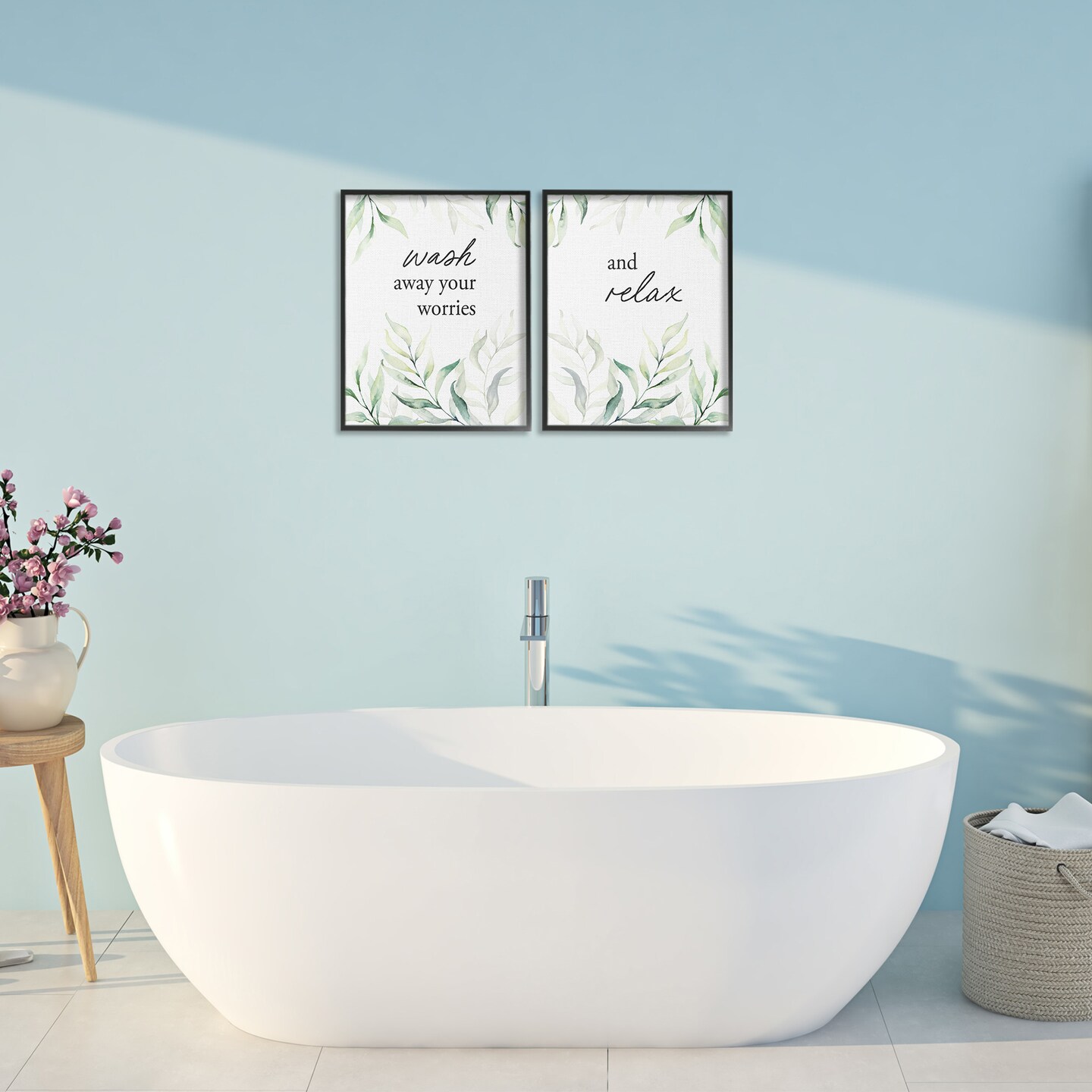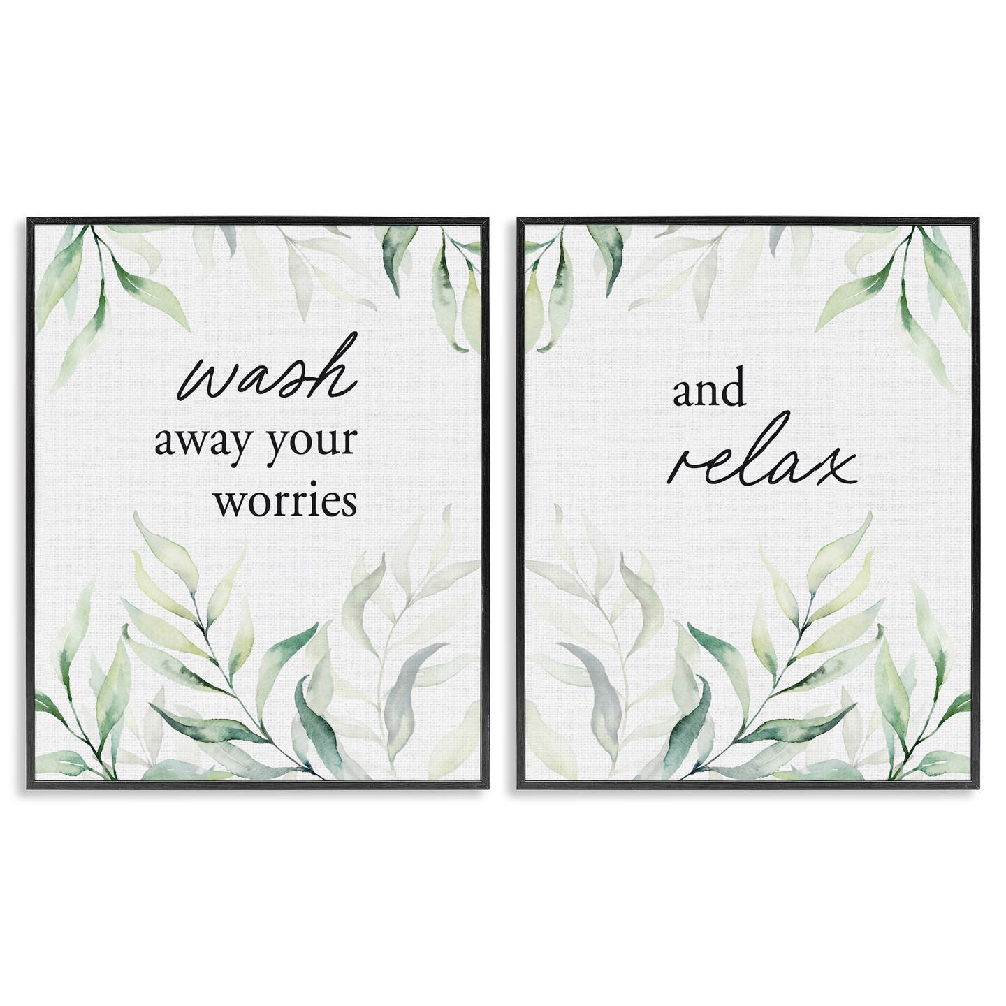 Stupell Industries Soothing Bathroom Greenery Words 2pc Framed Giclee Set, design by Lettered and Lined