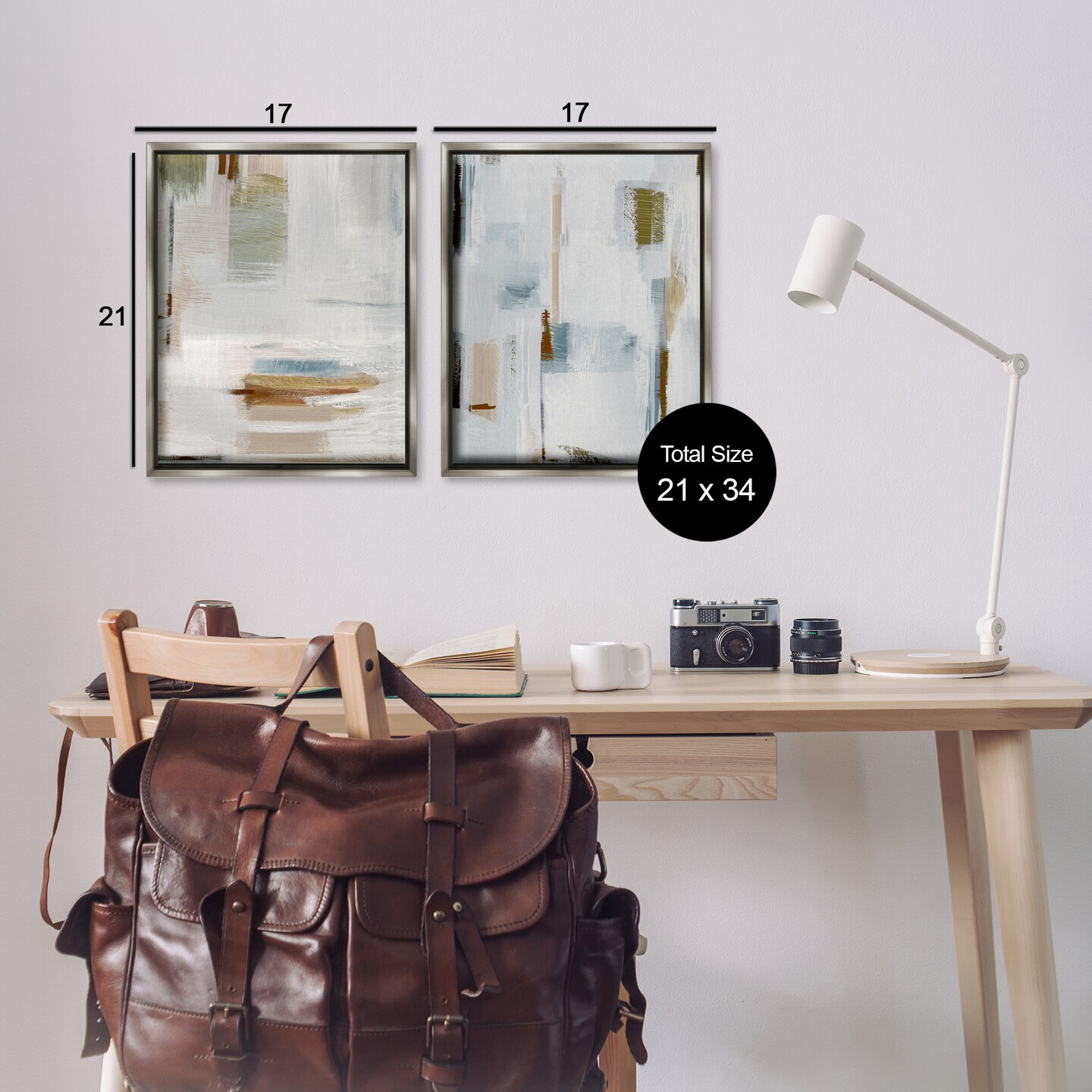 Stupell Industries Sophisticated Soft Abstraction 2 pc Framed Floater Canvas Wall Art Set Design by Susan Jill