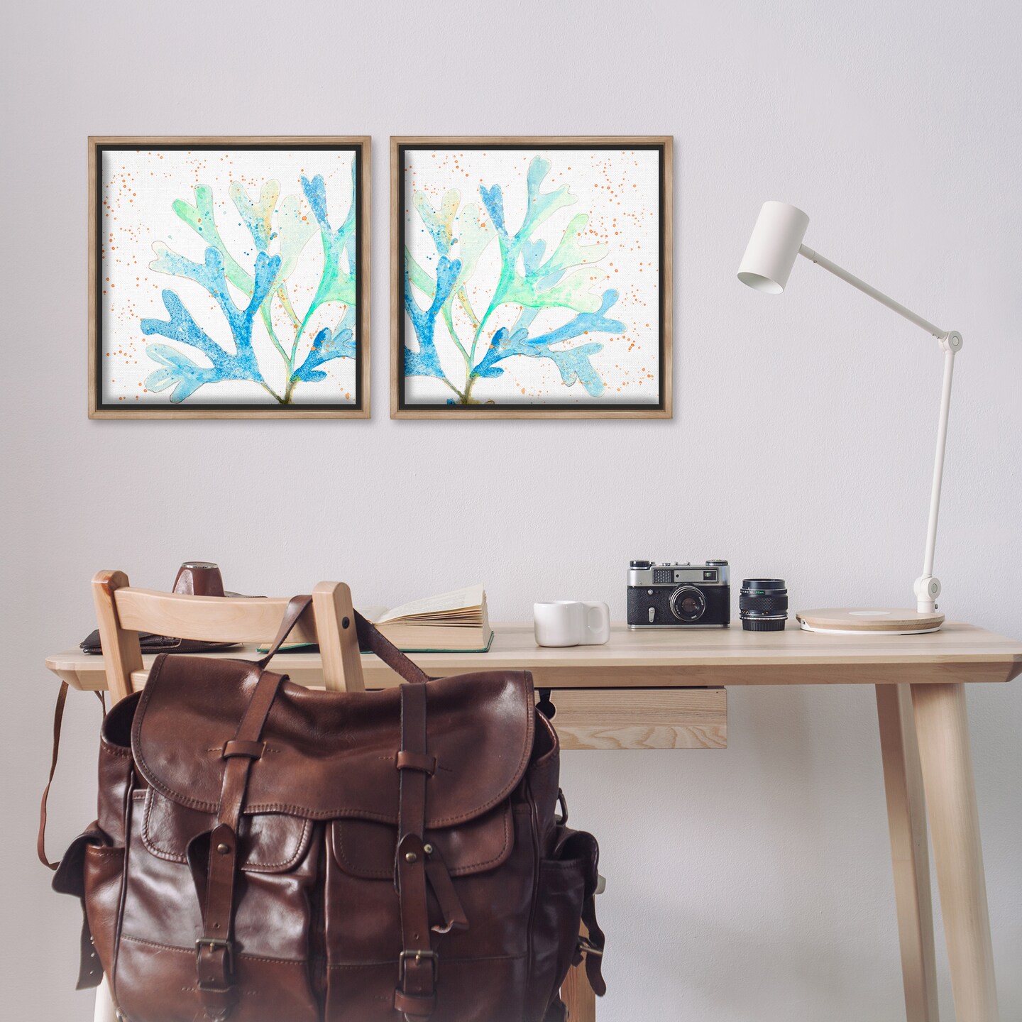 Stupell Industries Speckled Blue Green Coral 2 pc Framed Floater Canvas Wall Art Set Design by Patricia Pinto