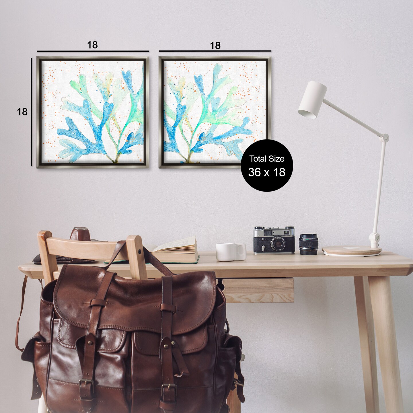 Stupell Industries Speckled Blue Green Coral 2 pc Framed Floater Canvas Wall Art Set Design by Patricia Pinto