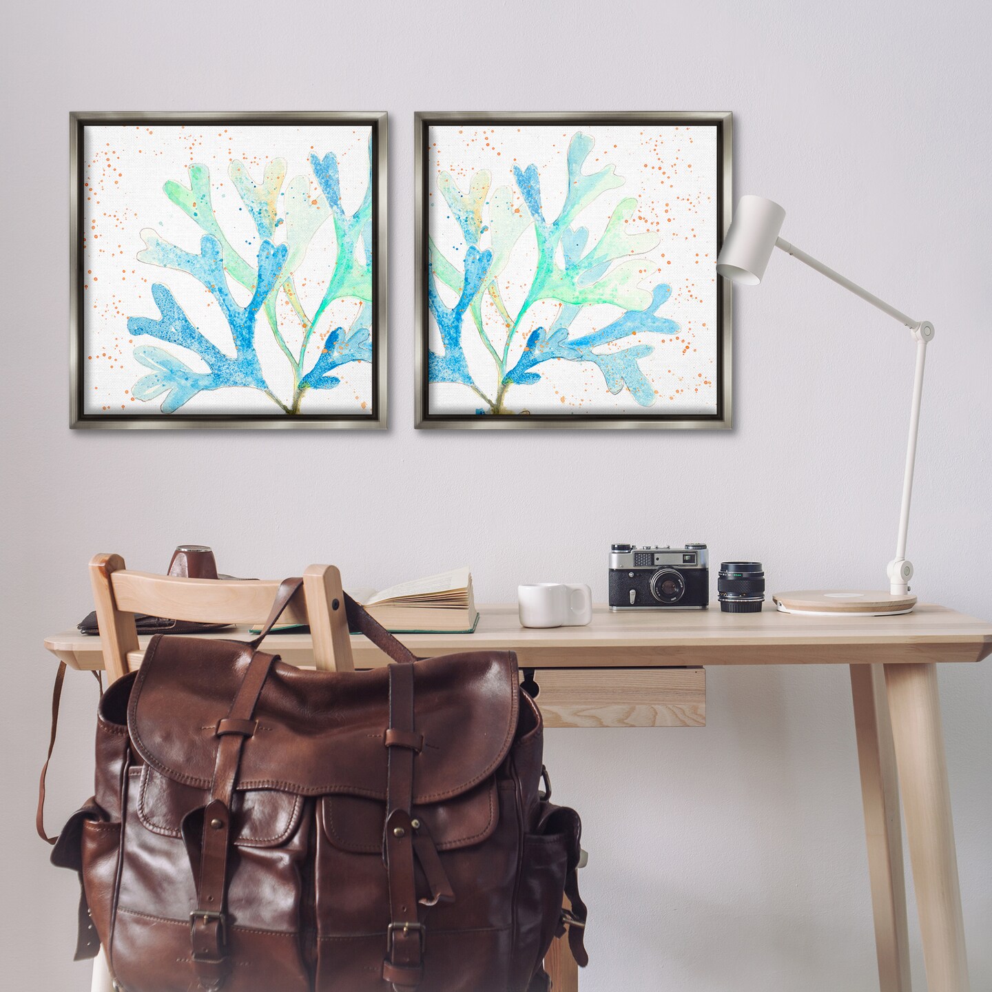 Stupell Industries Speckled Blue Green Coral 2 pc Framed Floater Canvas Wall Art Set Design by Patricia Pinto
