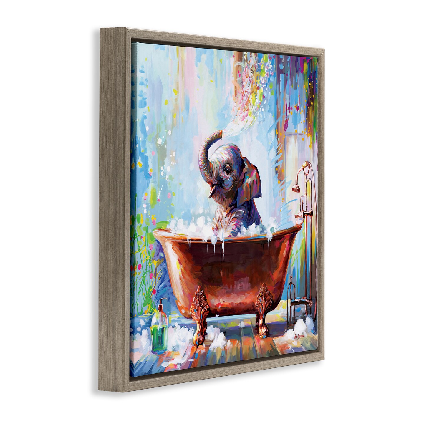 Stupell Industries Splashing Baby Elephant Floater Framed Canvas Wall Art Design by Leon Devenice