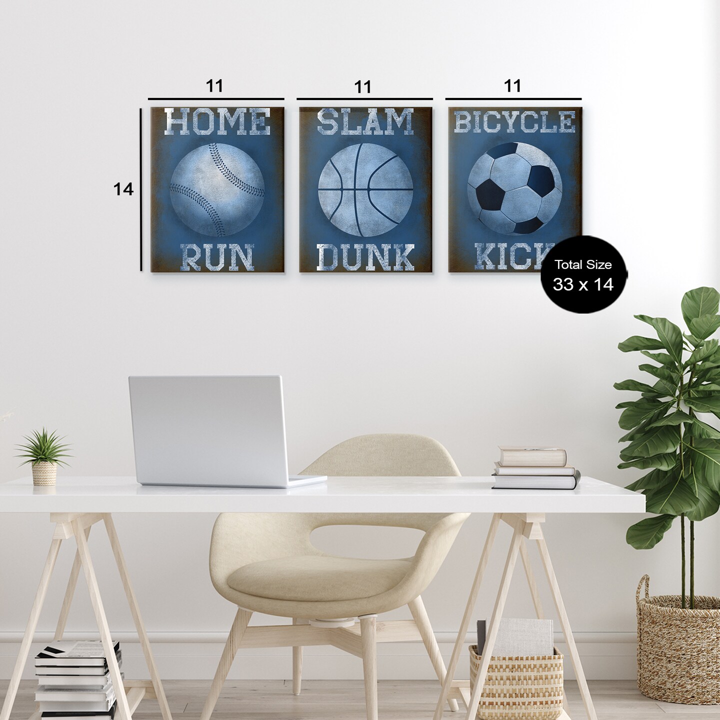 Stupell Industries Sports Words Inspiring Athlete 3 Piece Canvas Wall Art Set, design by Marcus Prime