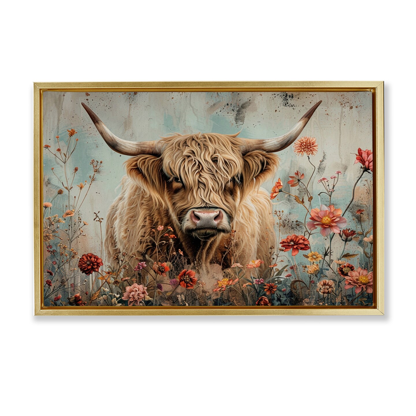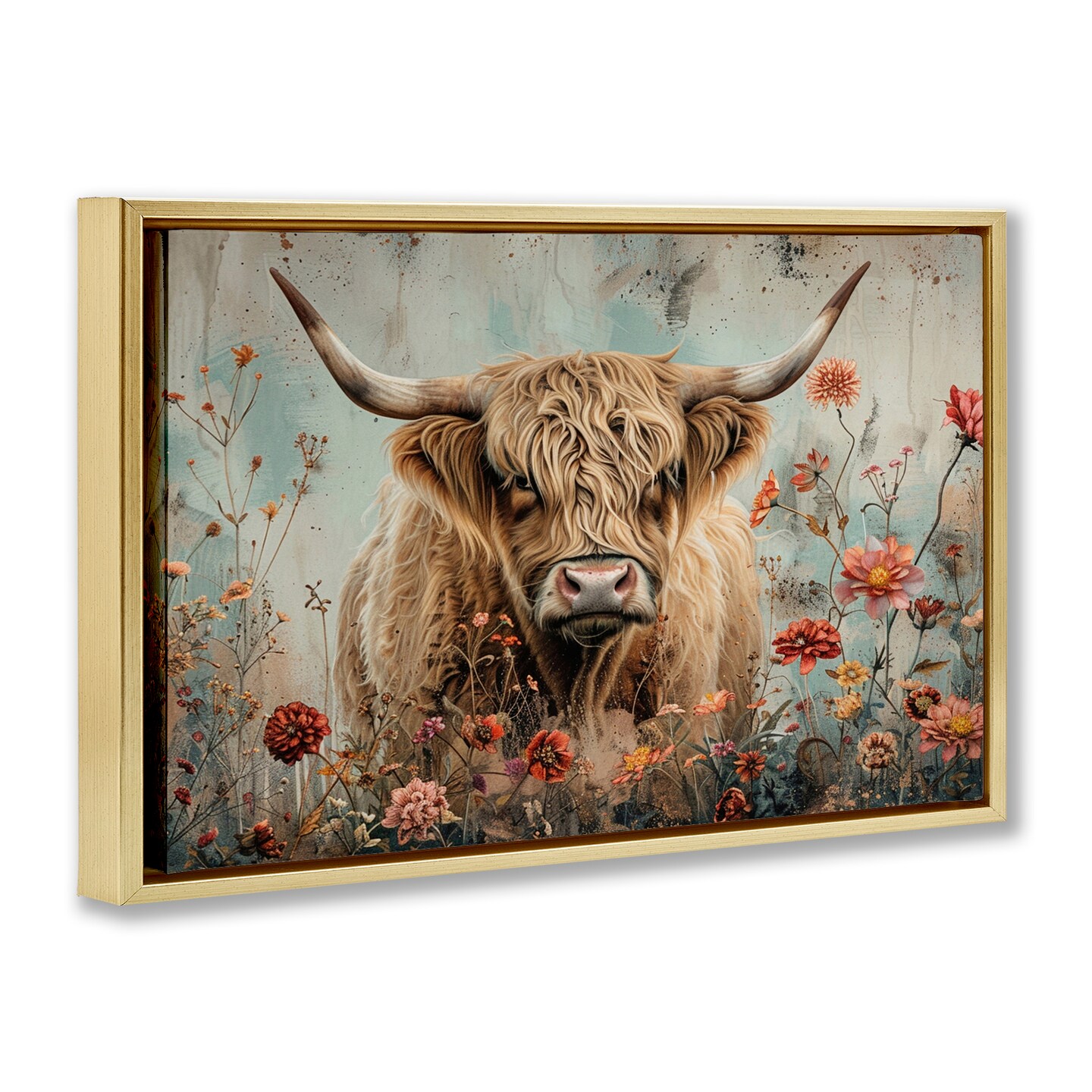 Stupell Industries Spring Blooms Highland Cow Floater Framed Canvas Wall Art Design by LSR Design Studio