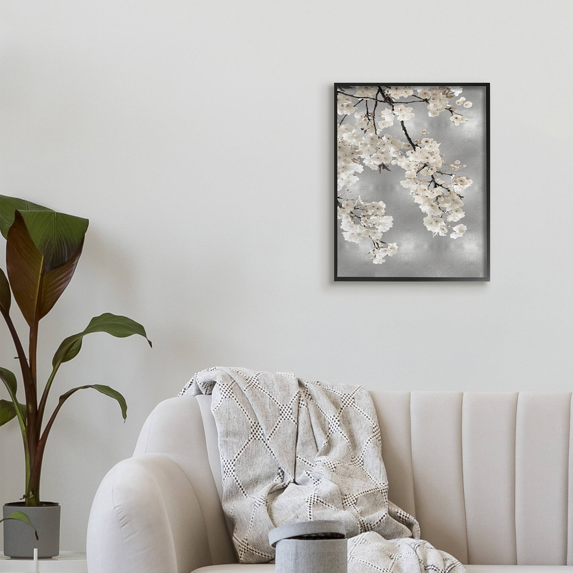 Stupell Industries Spring Blossoms White Flowers Tree Branch in Black Frame Wall Art