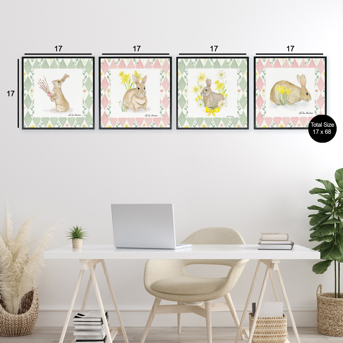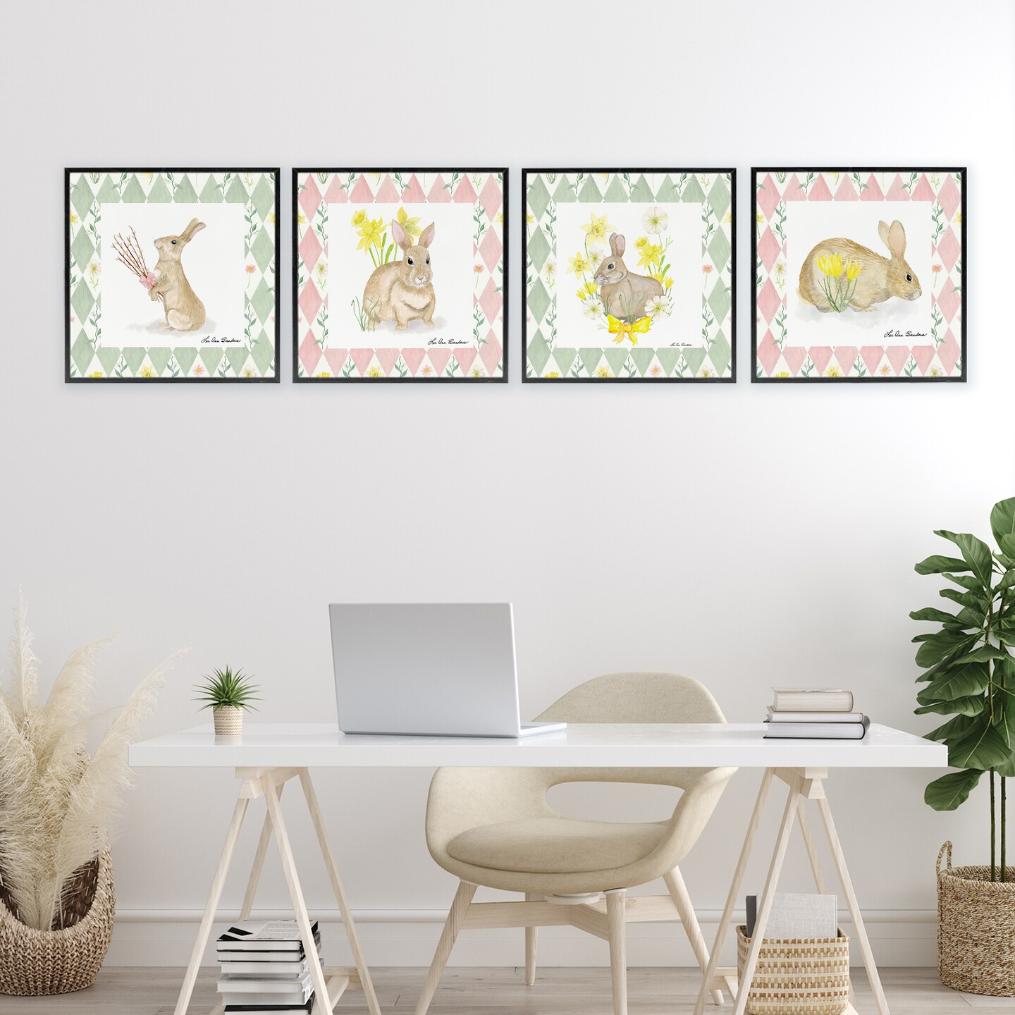 Stupell Industries Spring Bunnies on Argyle 4pc Framed Giclee Set, design by Lee Ann Sanders