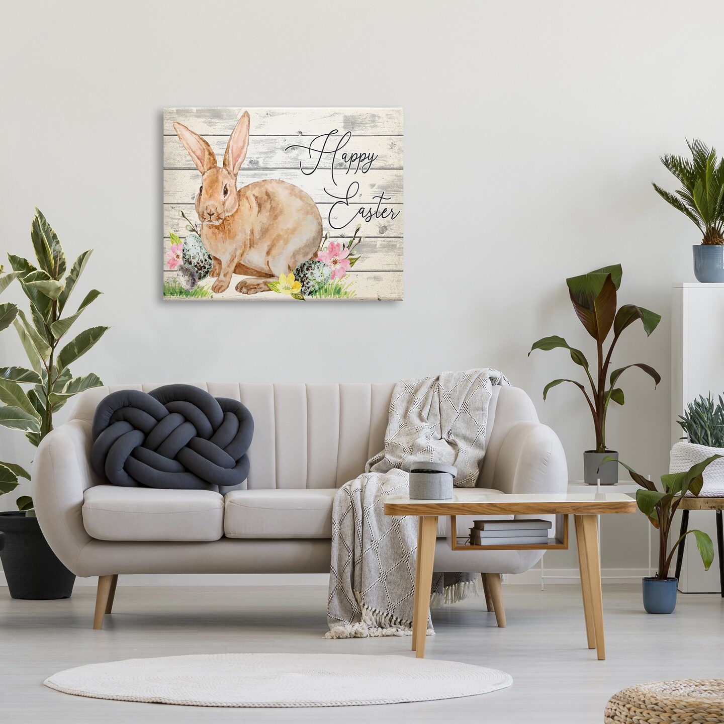 Stupell Industries Spring Floral Happy Easter Bunny Canvas Wall Art