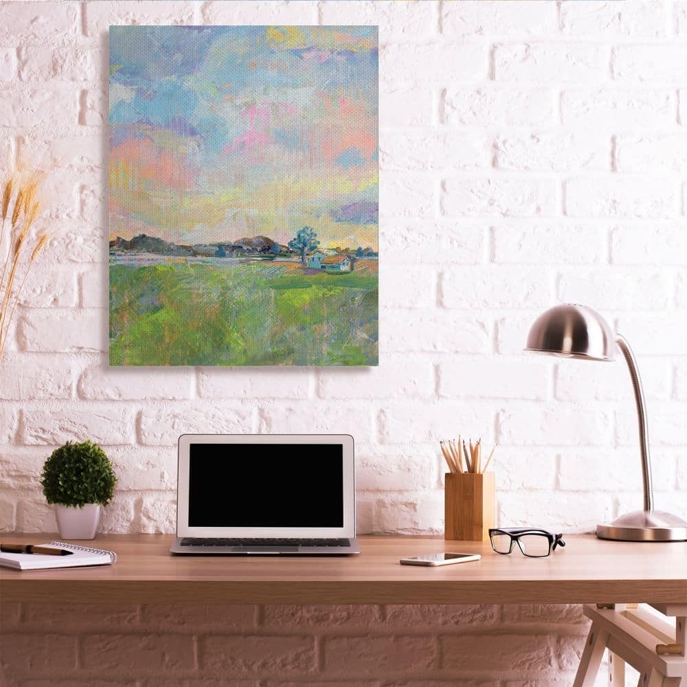 Stupell Industries Spring Meadow Sky with Field House Pastel Painting Canvas Wall Art