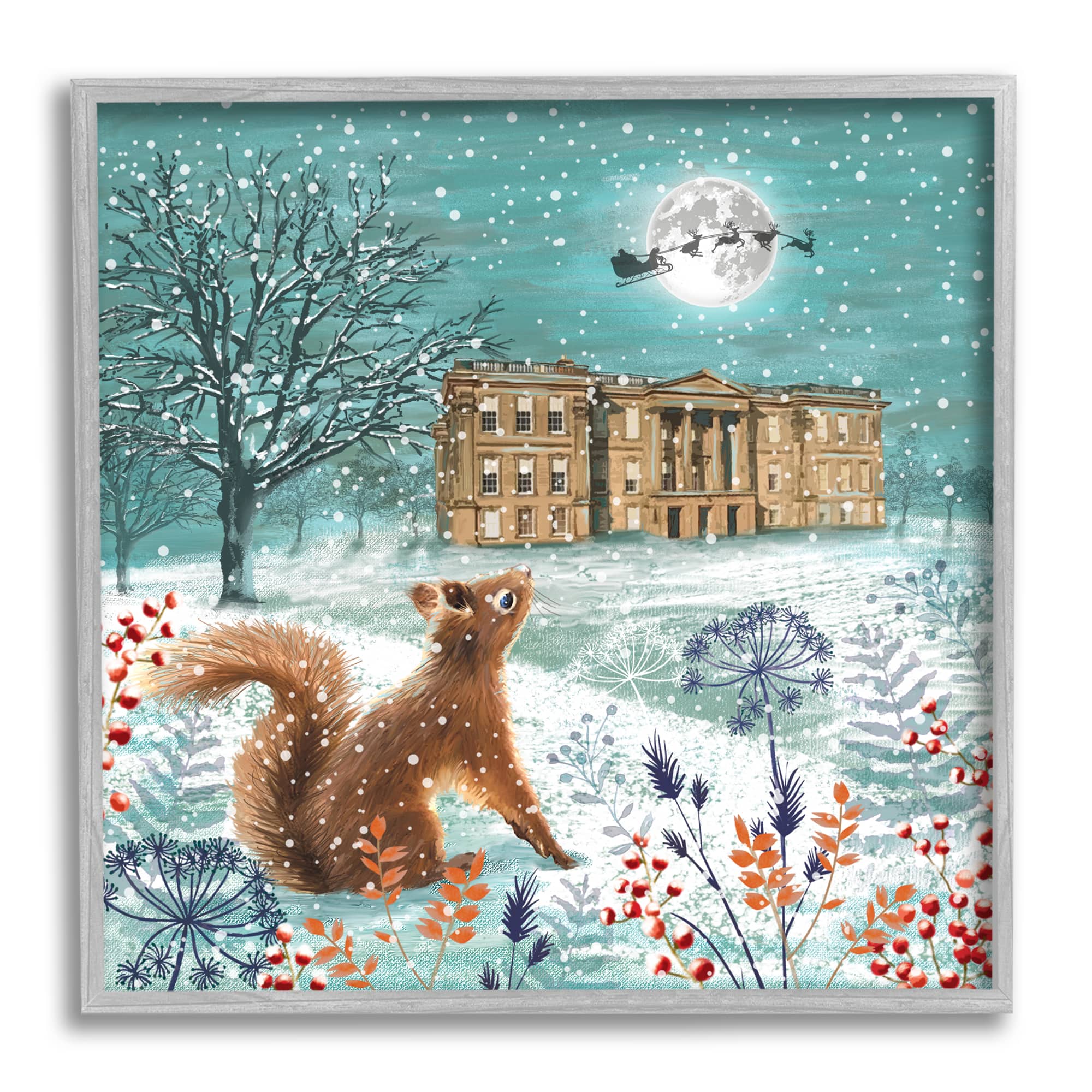 Stupell Industries Squirrel Watching Santa Claus Framed Giclee Art