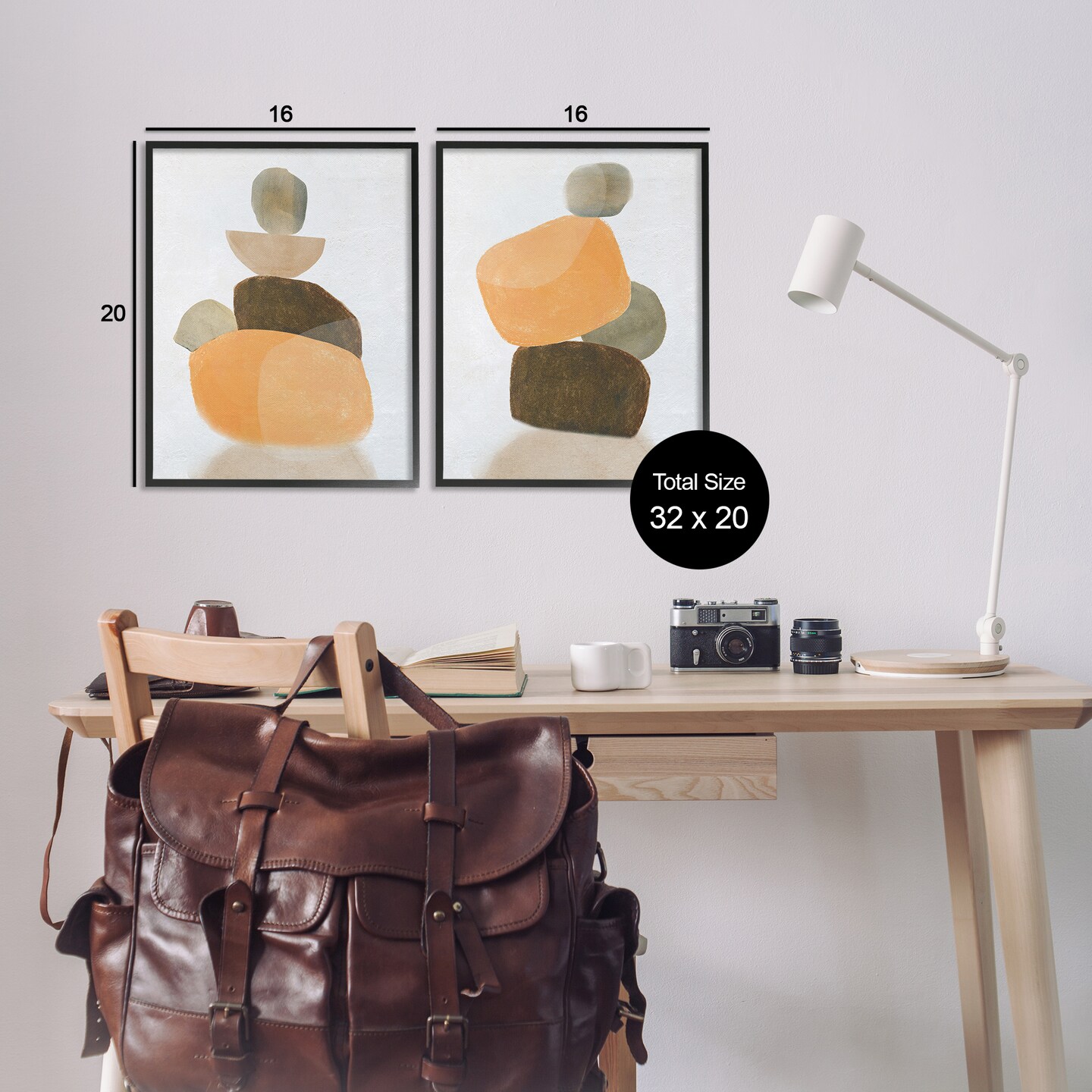 Stupell Industries Stacked Abstract Pebbles 2 pc Framed Giclee Wall Art Set Design by Carol Robinson