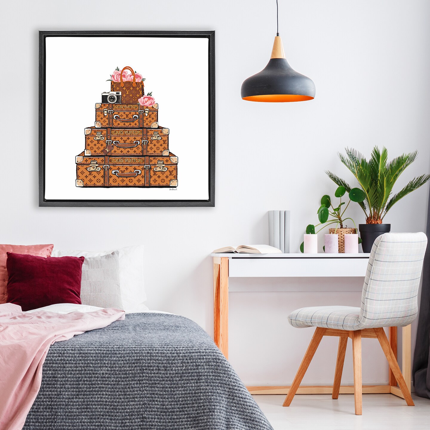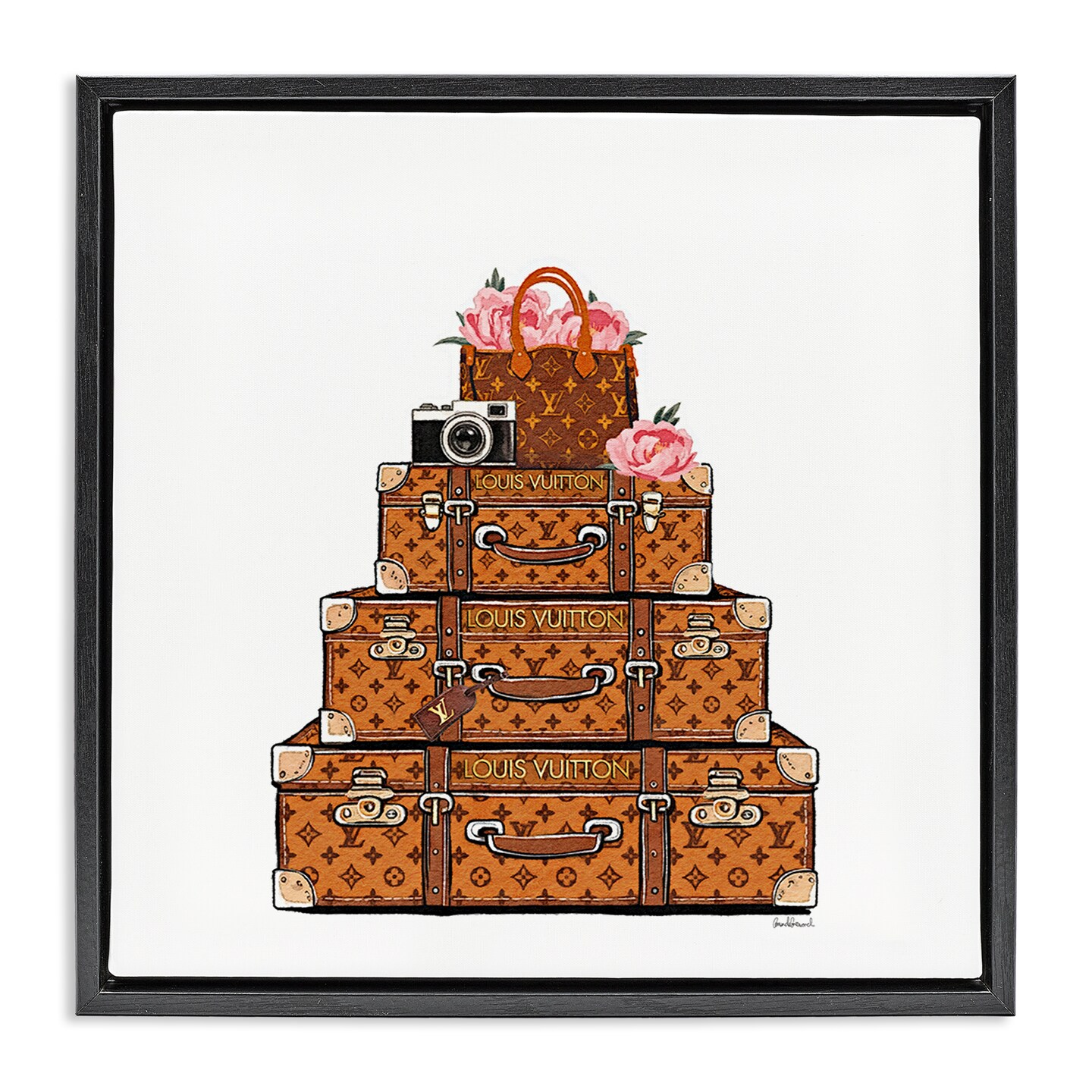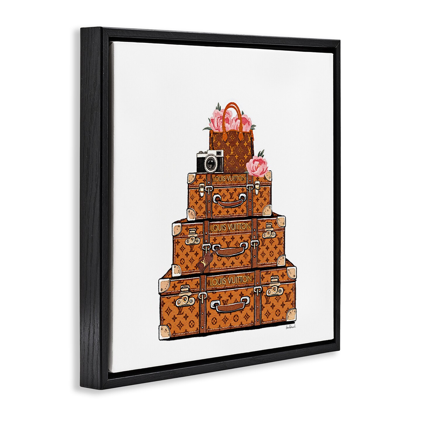 Stupell Industries Stacked Luggage with Floral Handbag Floating Frame, design by Amanda Greenwood