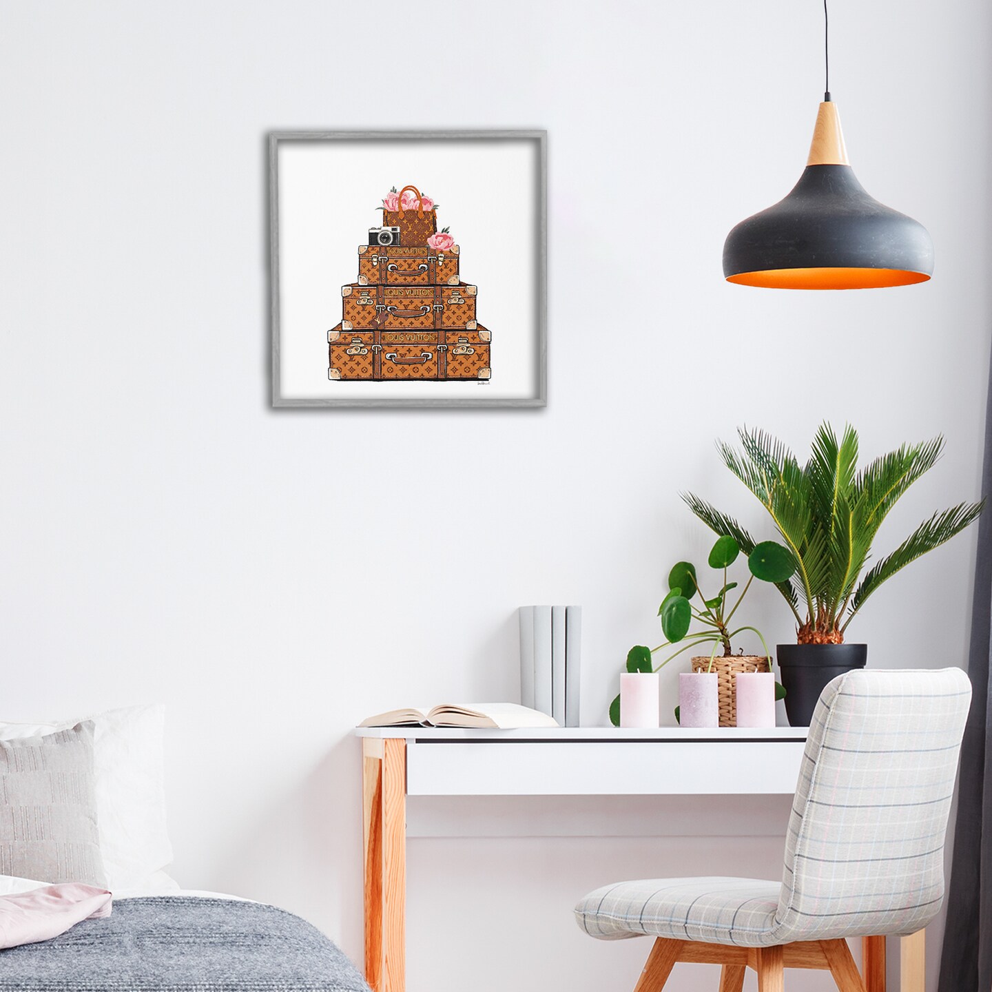 Stupell Industries Stacked Luggage with Floral Handbag Framed Giclee, design by Amanda Greenwood
