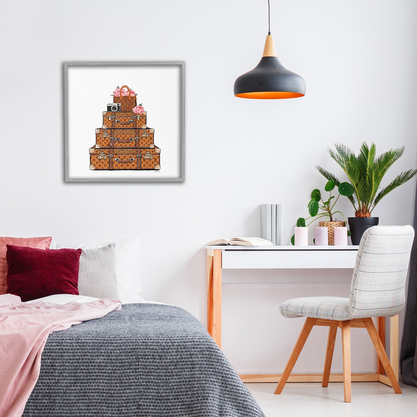 Stupell Industries Stacked Luggage with Floral Handbag Framed Giclee, design by Amanda Greenwood