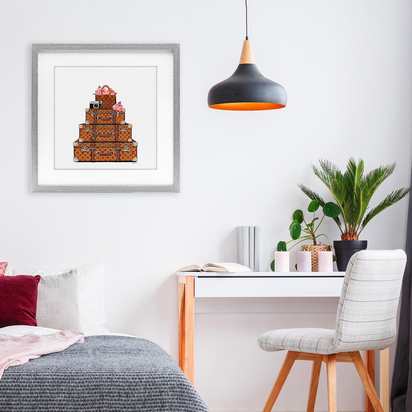 Stupell Industries Stacked Luggage with Floral Handbag Framed Print Under Glass, design by Amanda Greenwood