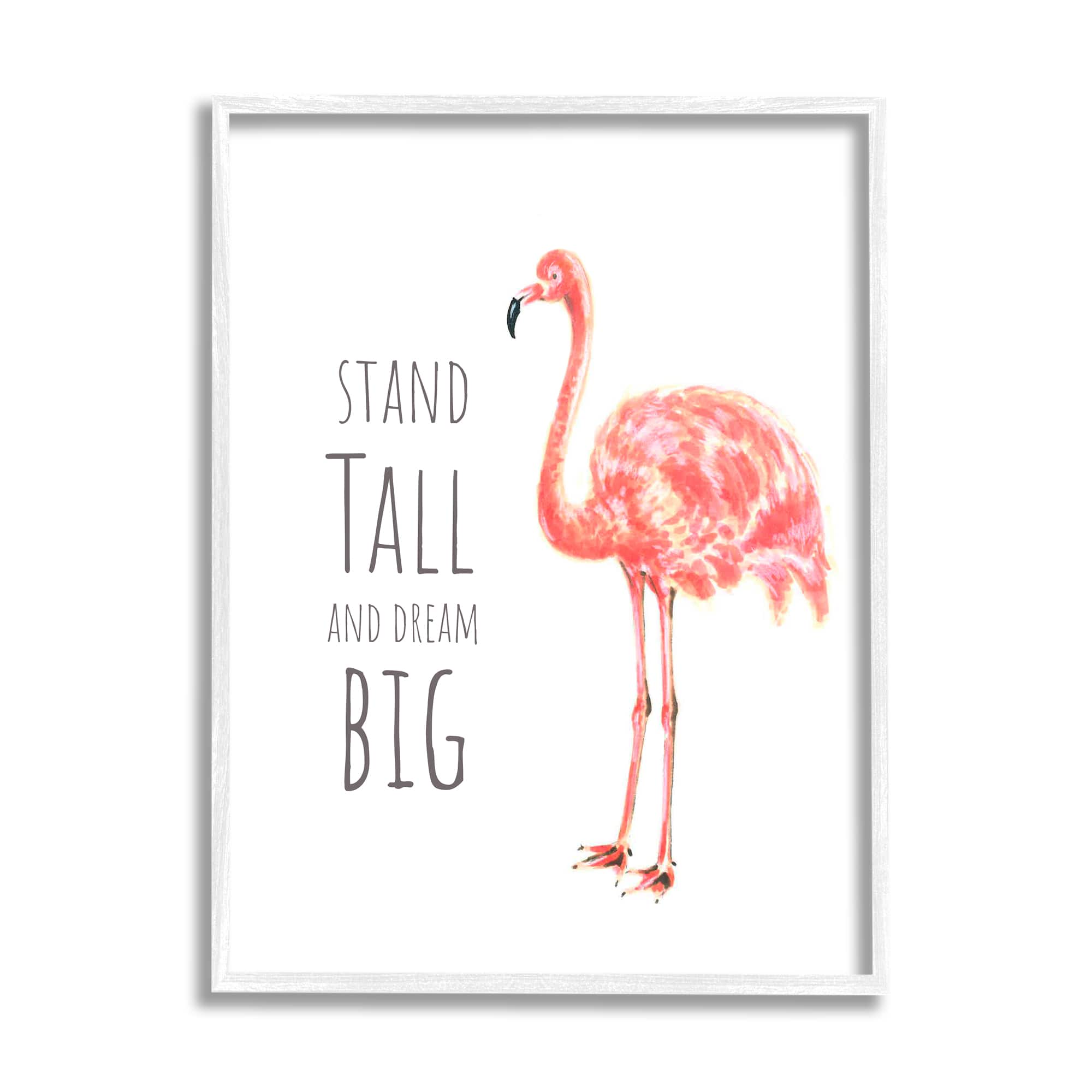 Stupell Industries Stand Tall and Dream Big Phrase Pink Flamingo Framed Wall Art
