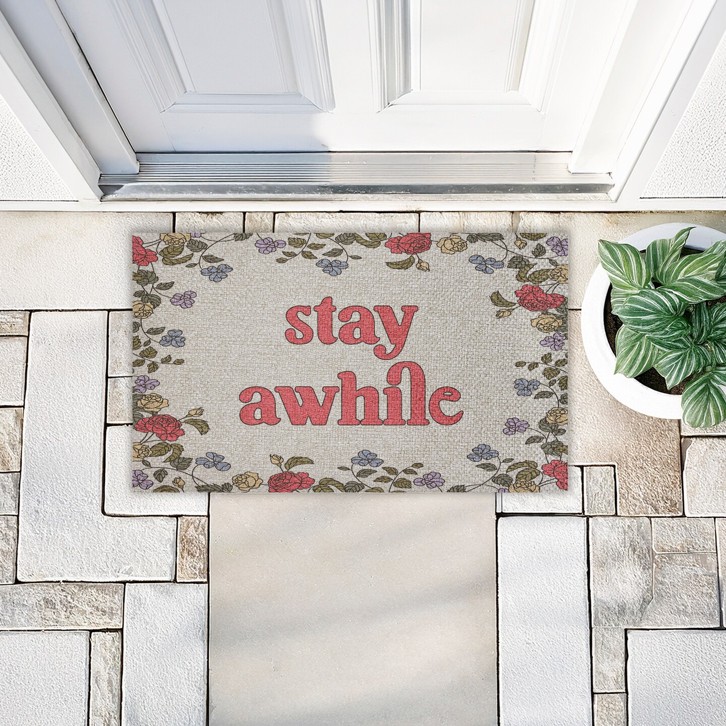 Stupell Industries Stay Awhile Bless This Home Floral Sisal Door Mat,18x30